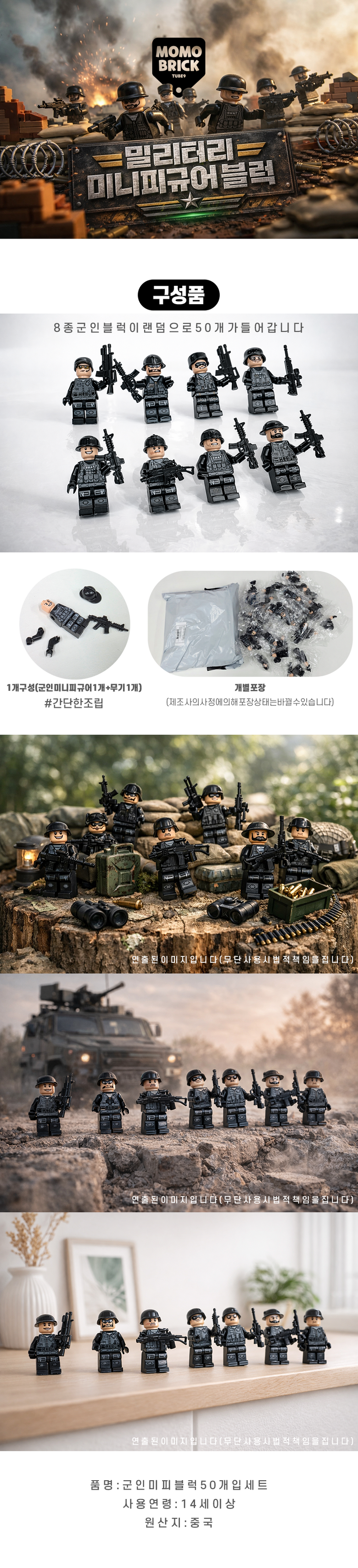 | 품명 및 모델명 | 밀리터리 미니피규어8종랜덤 50개세트 | 인증/허가 사항 | 14세이상 |