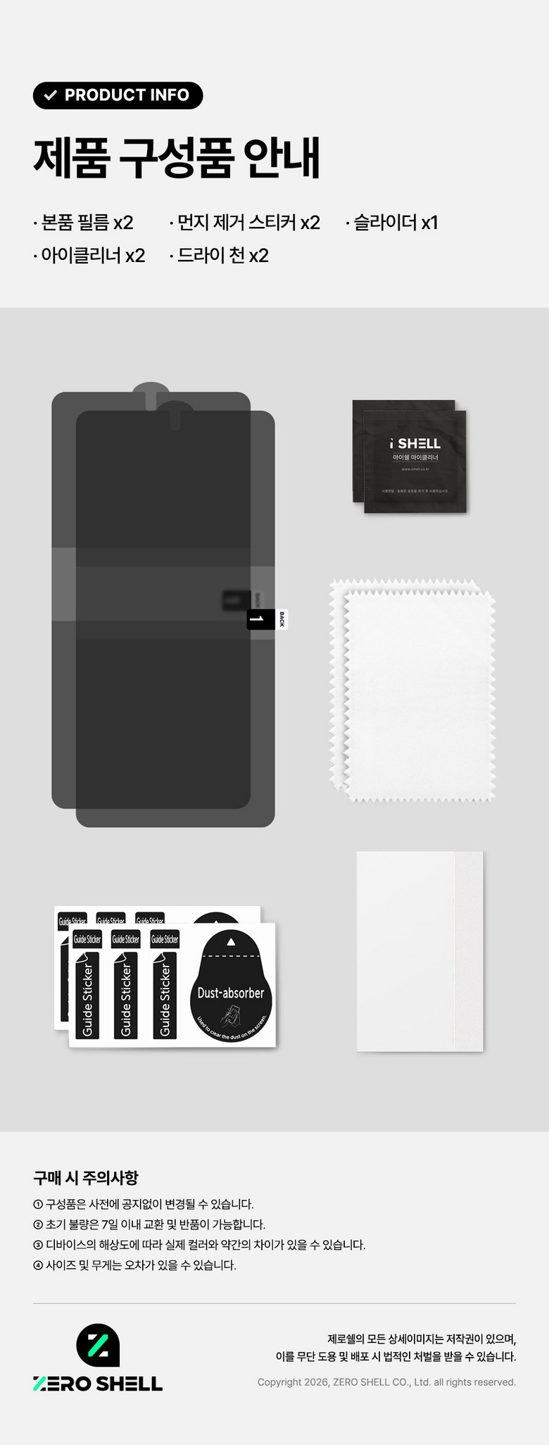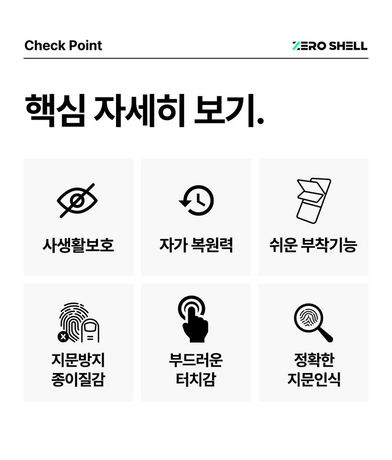 | 품명 및 모델명 | 제로쉘 자가복원 TPU 사생활보호 지문방지 필름 2P | 인증/허가 사항 | 해당 사항 없음 |