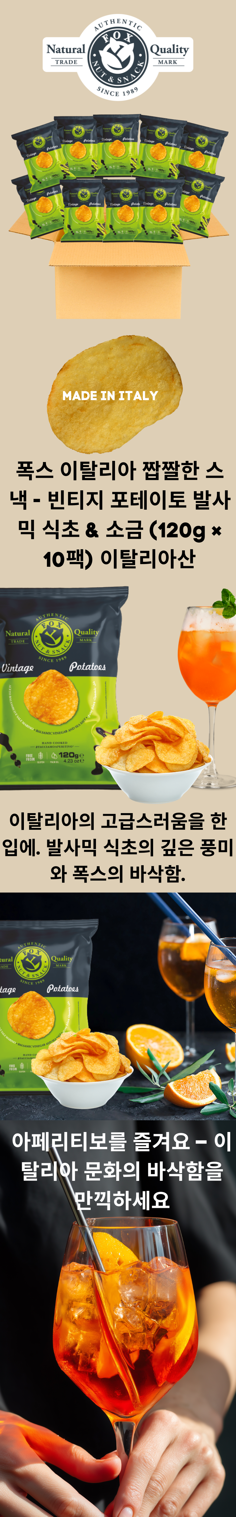 폭스이탈리아 빈티지 포테이토 감자칩 발사믹식초 소금 120g 팩 (10팩) 이탈리아산- Fox Italian Savory Snack Vintage Potato Balsami