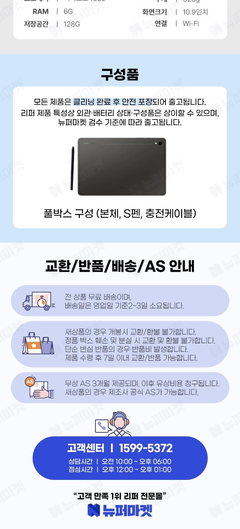 - ㆍ교환/반품에 관한 일반적인 사항은 판매자가 제시사항보다 관계법령이 우선합니다.