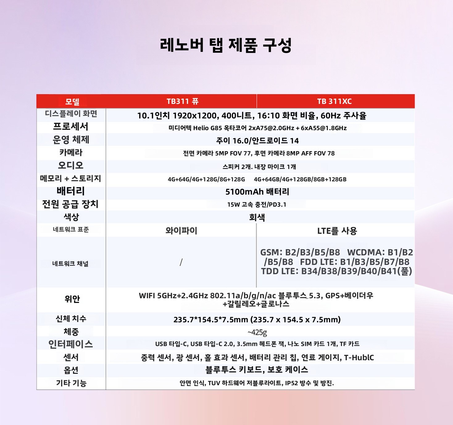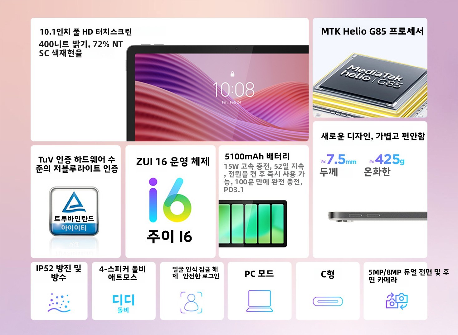 레노버 탭 자오양 K10C 안드로이드 태블릿 PC 10.1인치 TB311FU