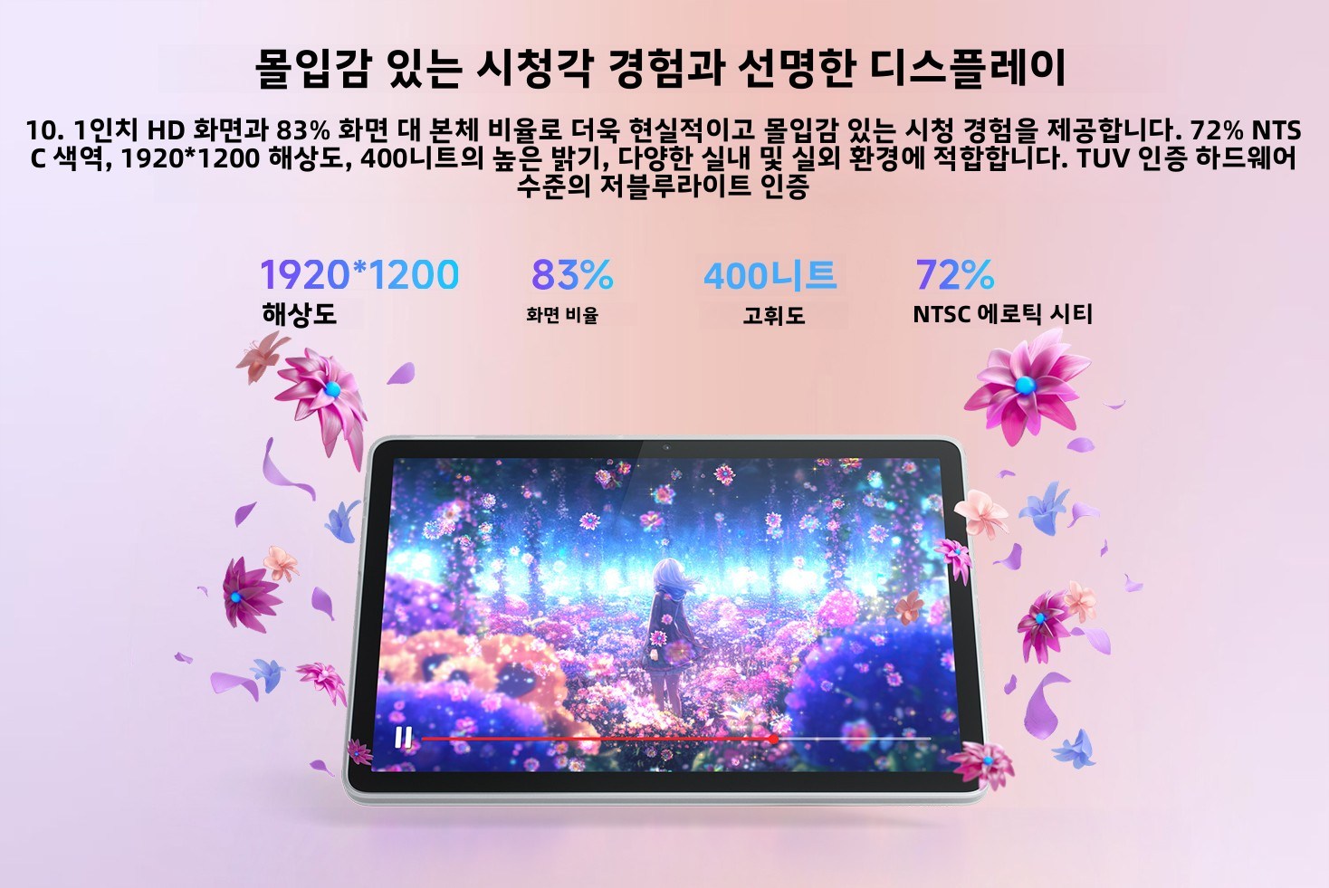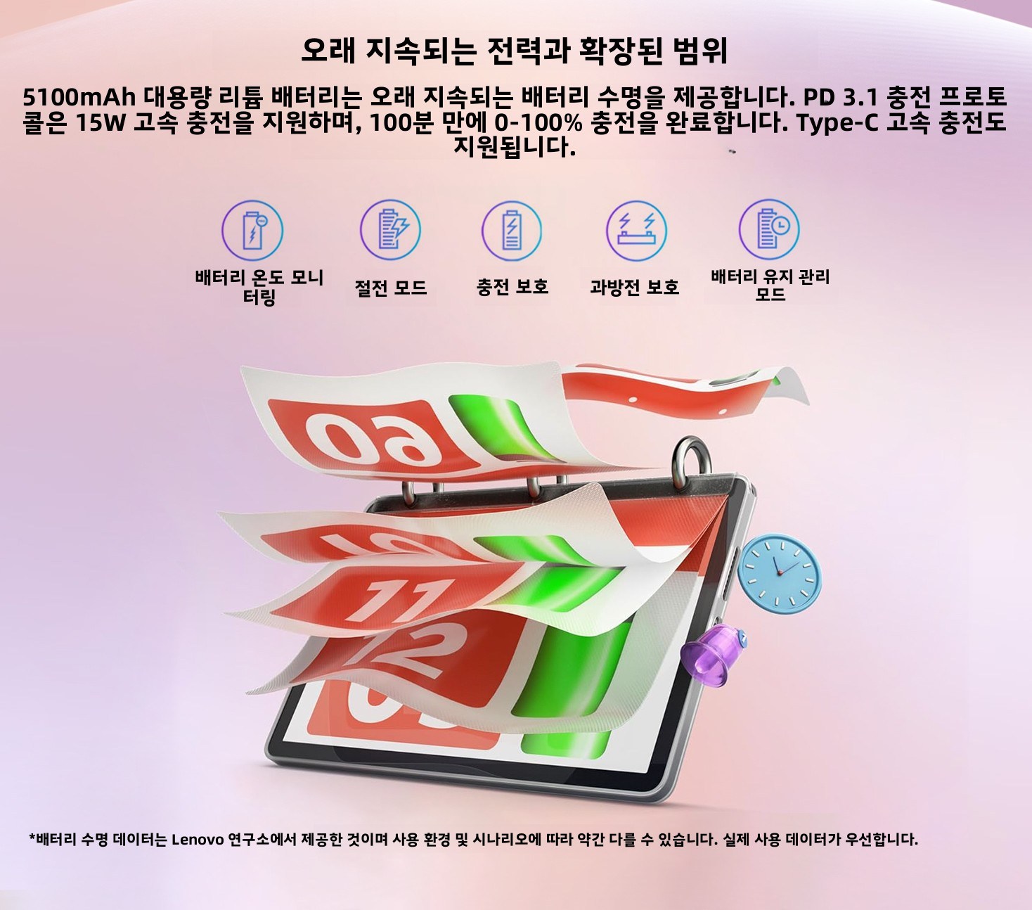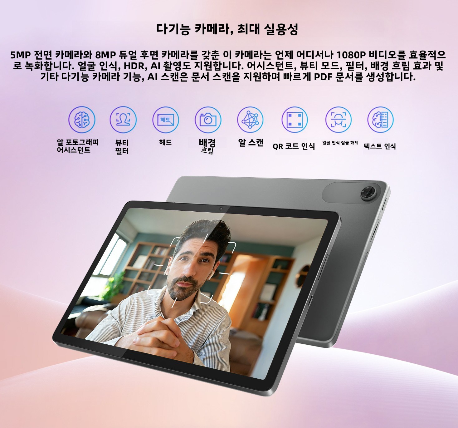 태블릿 1대, 어댑터 1개, USB 케이블 (Type-C 2.0, 1m) 1개, 보증서 1부, 빠른 시작 가이드 & 안전·보증 안내서 1부, SIM 핀 1개