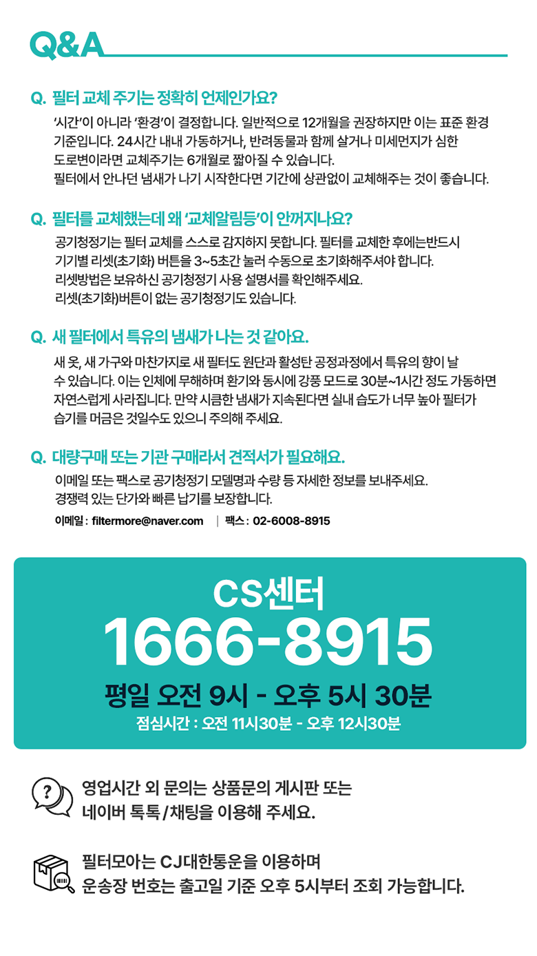 계좌이체- 공기청정기 필터 종류: 집진+탈취필터