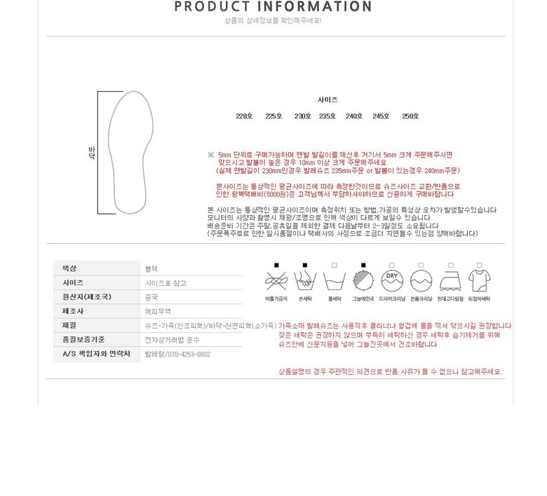 - 사이즈 계열: 165(발길이에서2cm크게주문)