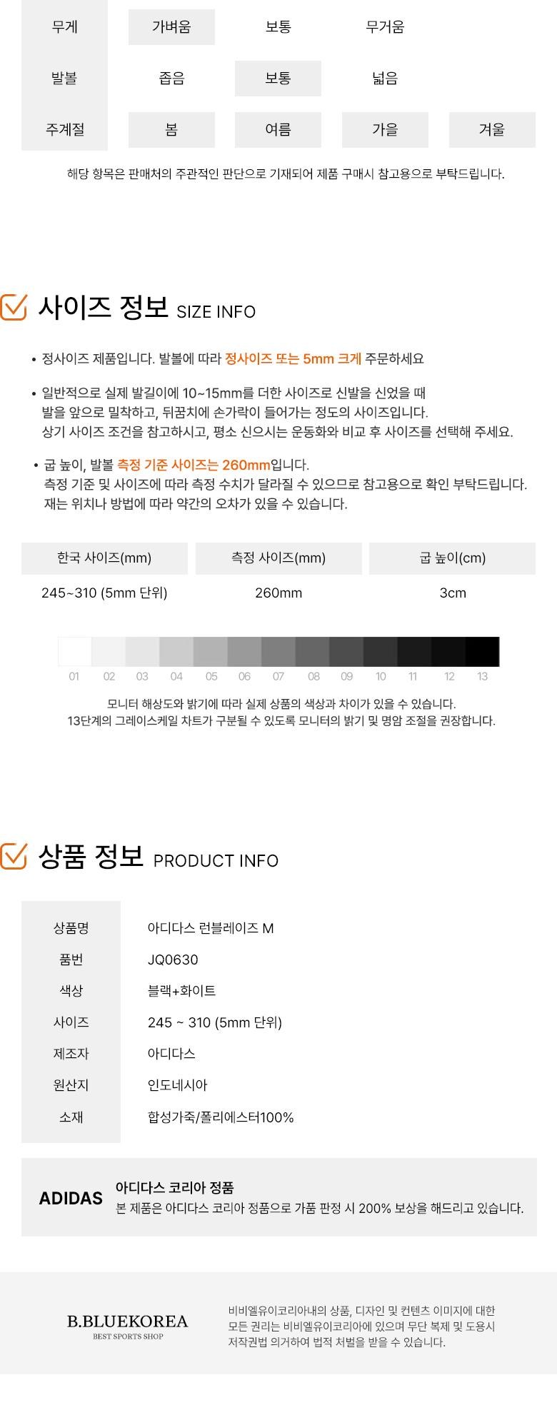 | 치수 | 상품 상세페이지 참조 | 제조자(수입자) | (유)아디다스코리아 |
