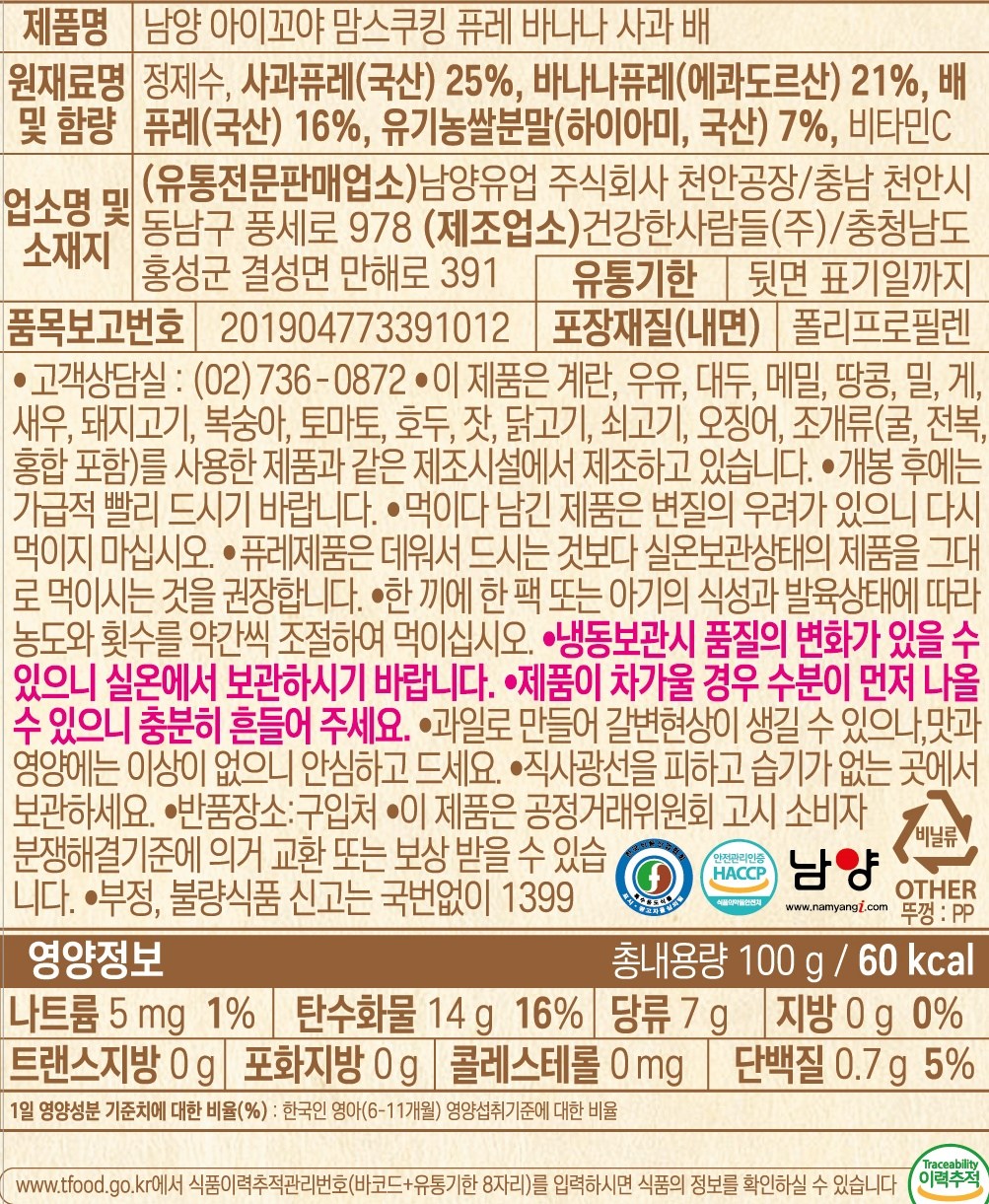 | 생산자 및 소재지 | 컨텐츠 참조 | 제조연월일, 소비기한 또는 품질유지기한 | 소비기한(또는 유통기한) : 2026년 10월 21일 이거나 그 이후인 상품 제조년월일 : 2025년 10월 22일 이후인 제조상품 |