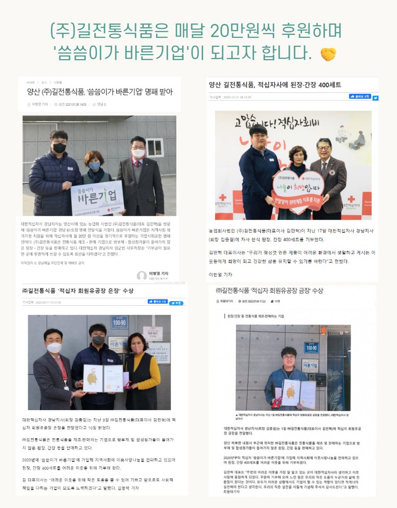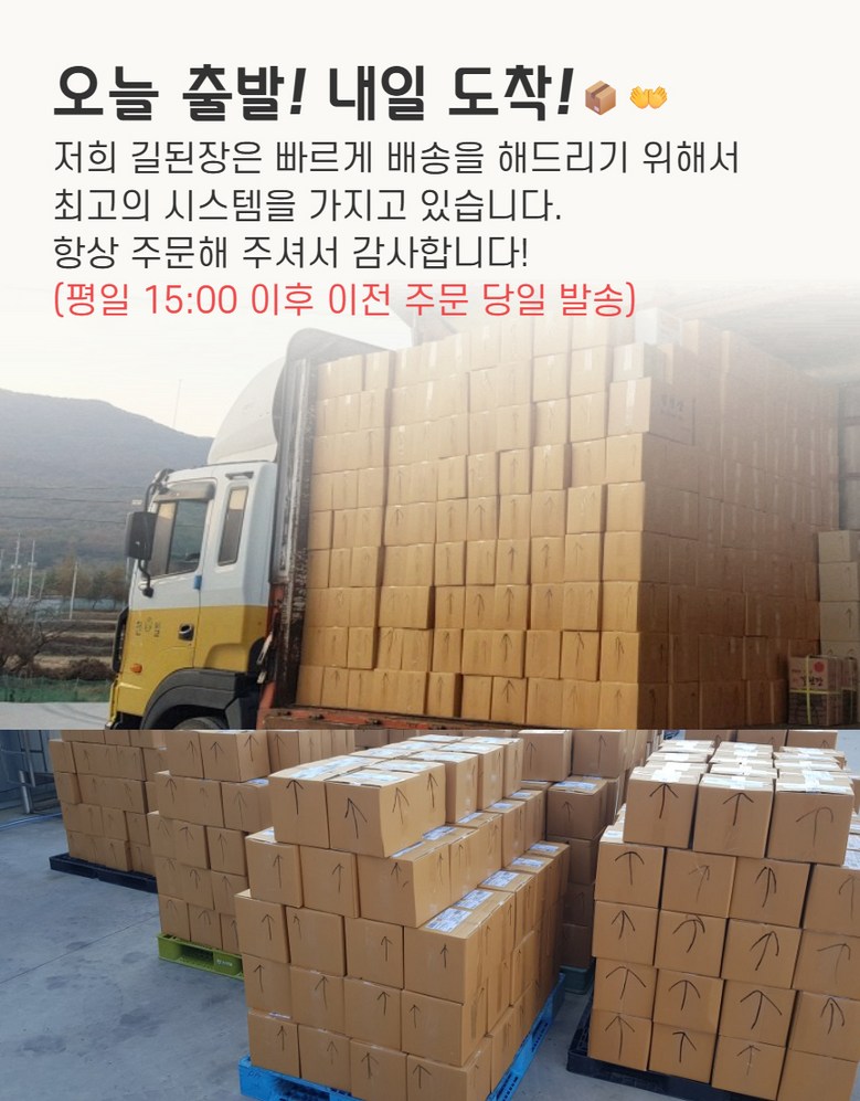 | 생산자 및 소재지 | 농업회사법인(주)길전통식품 / 경남 양산시 하북면 용연로 100-90 | 제조연월일, 소비기한 또는 품질유지기한 | 제조일로부터 3개월미만 ★일주일 이내에 드실경우에는 가능한 5℃~10℃에 보관하시고, 장기간 보관하실 경우에는 냉동보관하셔야합니다★ |
