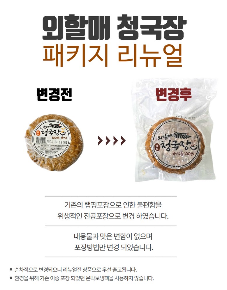 | 제품명 | 외할매 청국장 | 식품의 유형 | 청국장 |