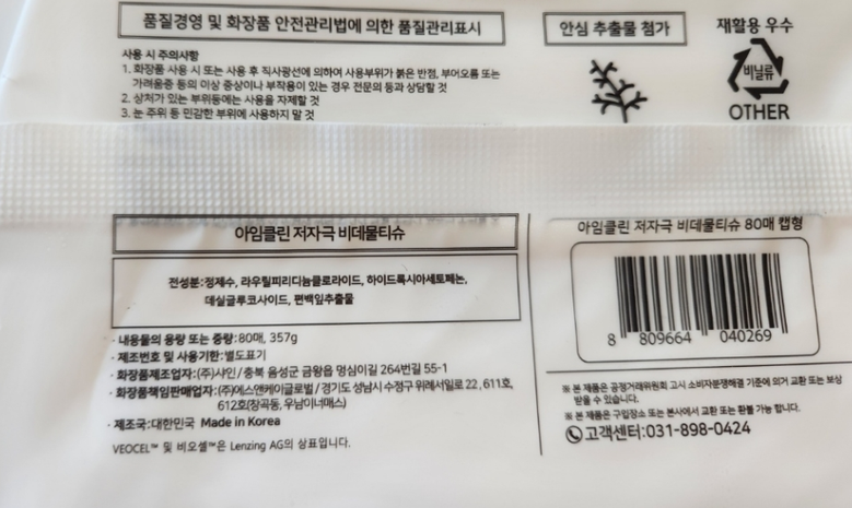 | 사용기한 또는 개봉 후 사용기간 | 본 상품은 해당 물류센터 직발송 상품인 관계로 제조연월일 및 사용기한 정보가 매번 변경되므로 상단 사용기한 정보를 참고해 주세요. | 사용방법 | 캡으로 된 부분을 열어 원단을 뽑아 피부 결에 따라 가볍게 문질러 닦아주세요 |