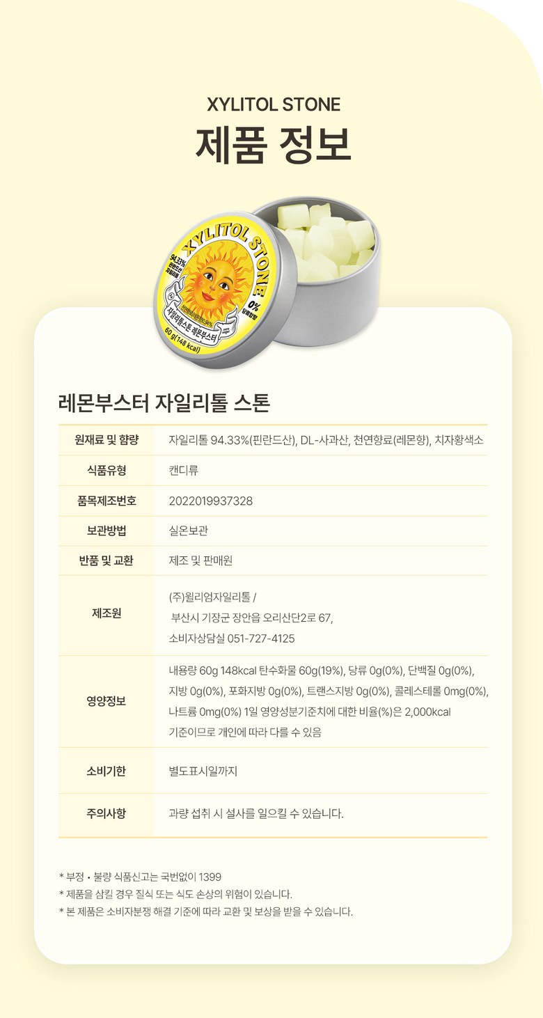 [자일리톨스톤] 자일리톨 무설탕캔디 레몬부스터 60g (과일맛캔디 충치예방 수제사탕% 핀란드산 간식선물), 60g, 1개