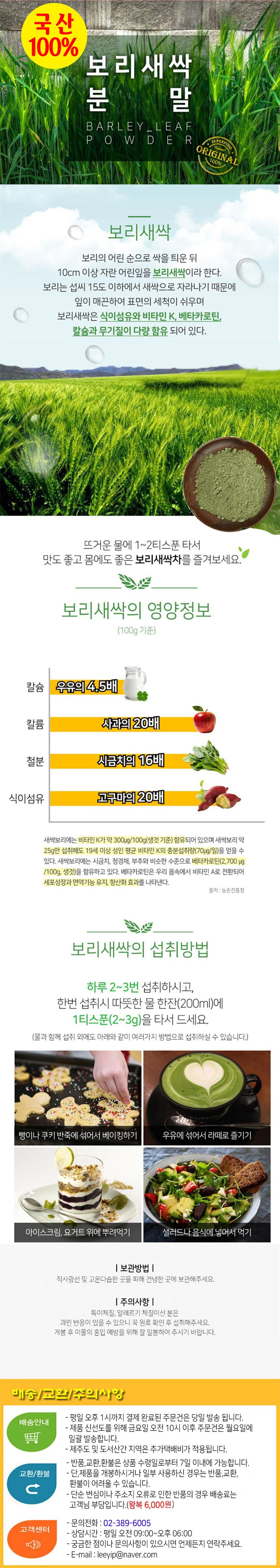 | 포장단위별 내용물의 용량(중량), 수량 | 500g | 원재료명 및 함량 | 보리새싹 100% (국산) |