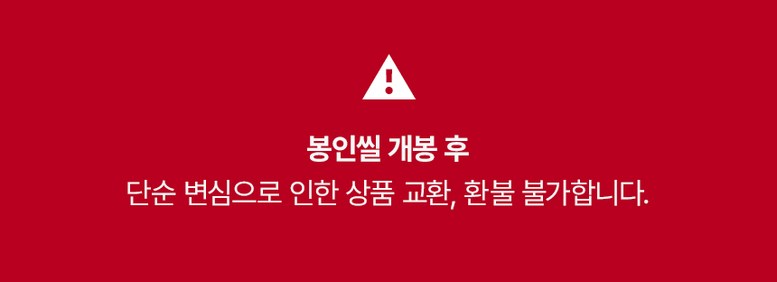 | 교환/반품 신청 기준일 | ㆍ단순변심에 의한 교환/반품은 제품 수령 후 7일 이내까지, 교환/반품 제한사항에 해당하지 않는 경우에만 가능 (배송비용과 교환/반품 비용 왕복배송비 고객부담) ㆍ상품의 내용이 표시·광고의 내용과 다른 경우에는 상품을 수령한 날부터 3개월 이내, 그 사실을 안 날 또는 알 수 있었던 날부터 |