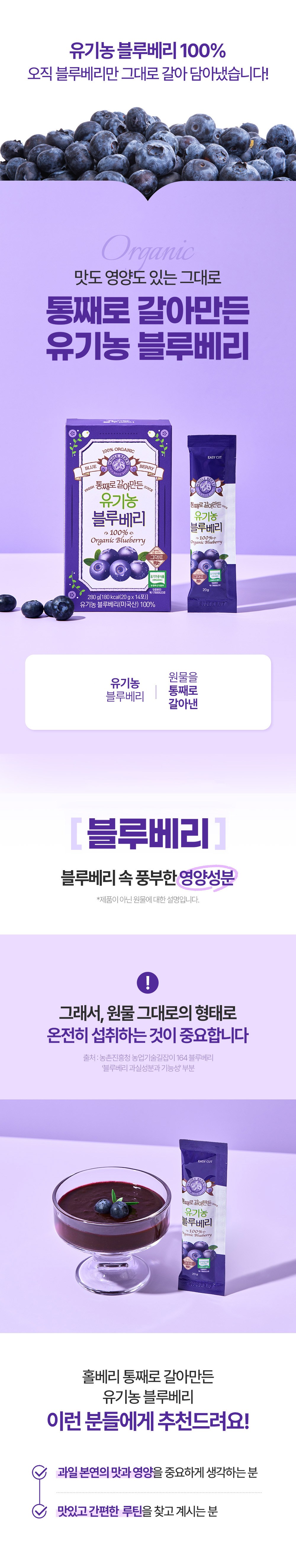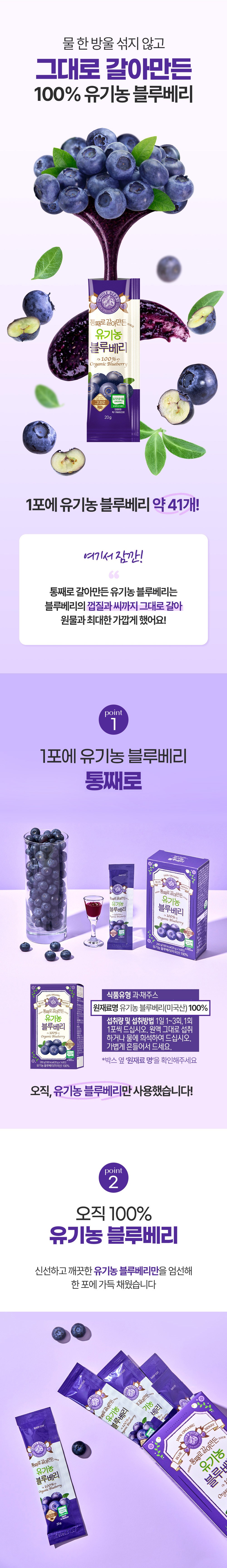 | 제품명 | 통째로 갈아 만든 유기농 블루베리 | 식품의 유형 | 컨텐츠 참조 |