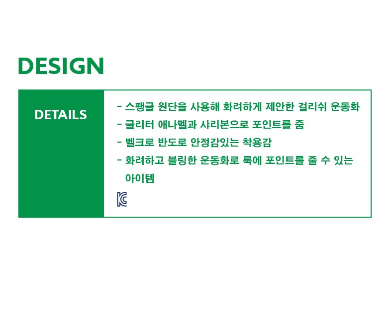 | 색상 | 핑크 | 재질 | 갑피 : 폴리에스터 100% 배색 : 합성가죽 안감 : 폴리에스터 100% 겉창 : 고무창 |