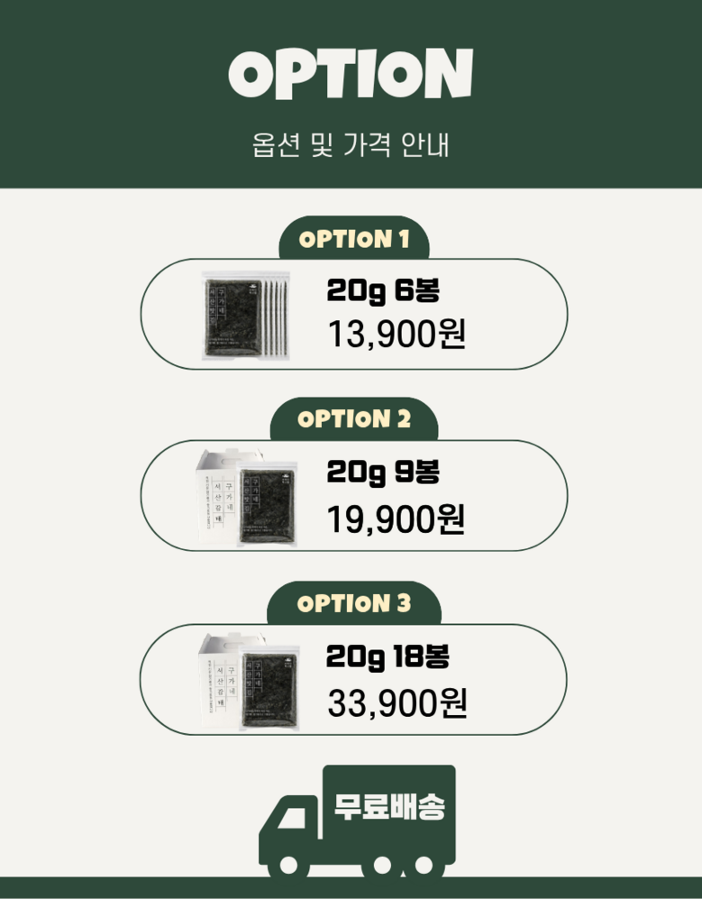 | 배송방법 | 순차배송 | 배송비 | 무료배송 - 도서산간 지역 배송불가 |