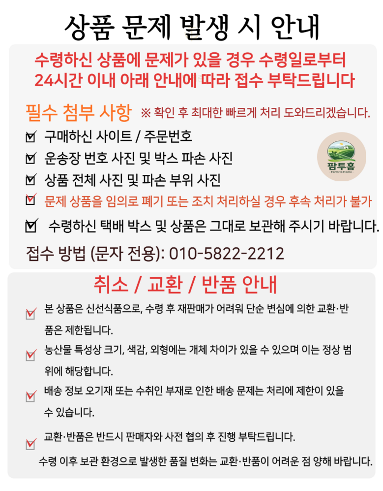 - ㆍ교환/반품에 관한 일반적인 사항은 판매자가 제시사항보다 관계법령이 우선합니다.