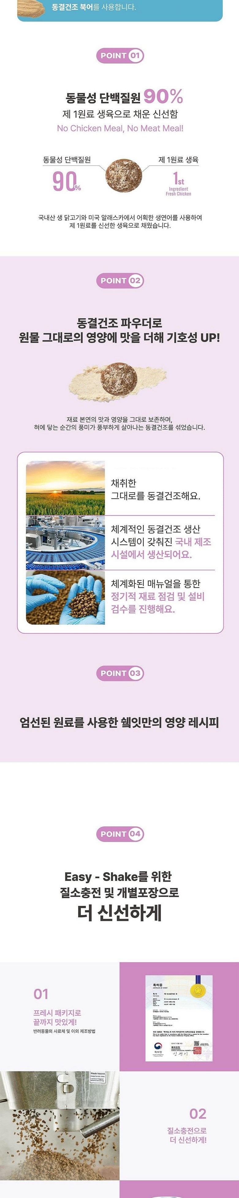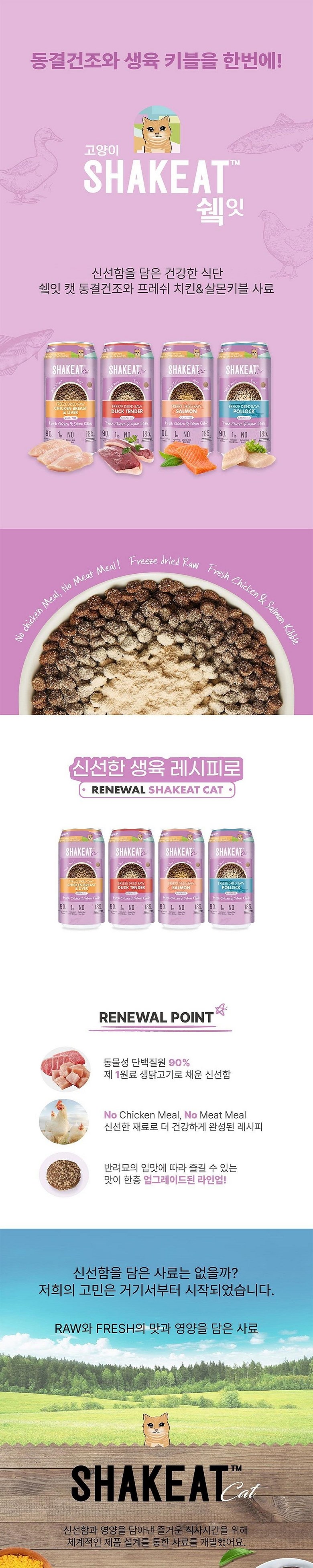 | 품명 및 모델명 | 쉨잇캣 닭간, 쉨잇캣 북어, 쉨잇캣 양고기, 쉨잇캣 오리 | 인증/허가 사항 | 사료관리법에 따른 성분등록번호 : 컨텐츠 참조 |