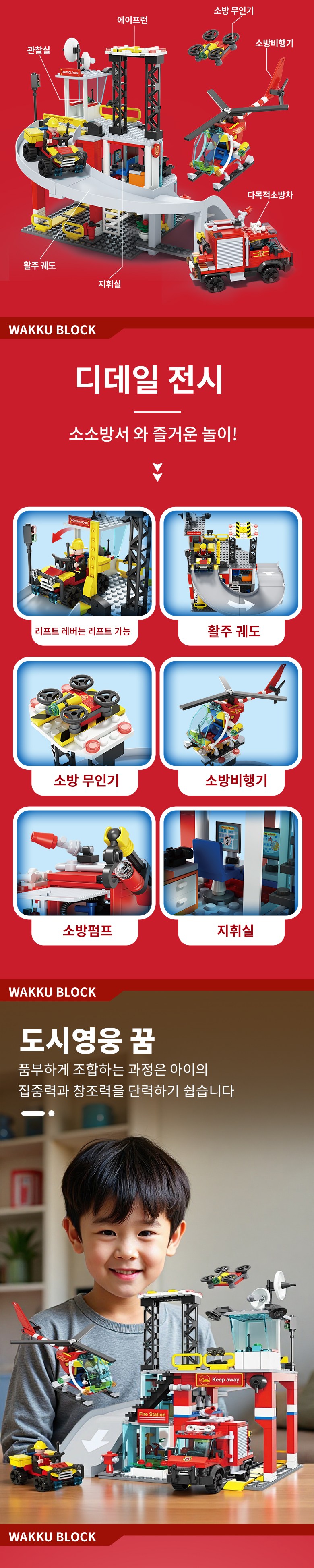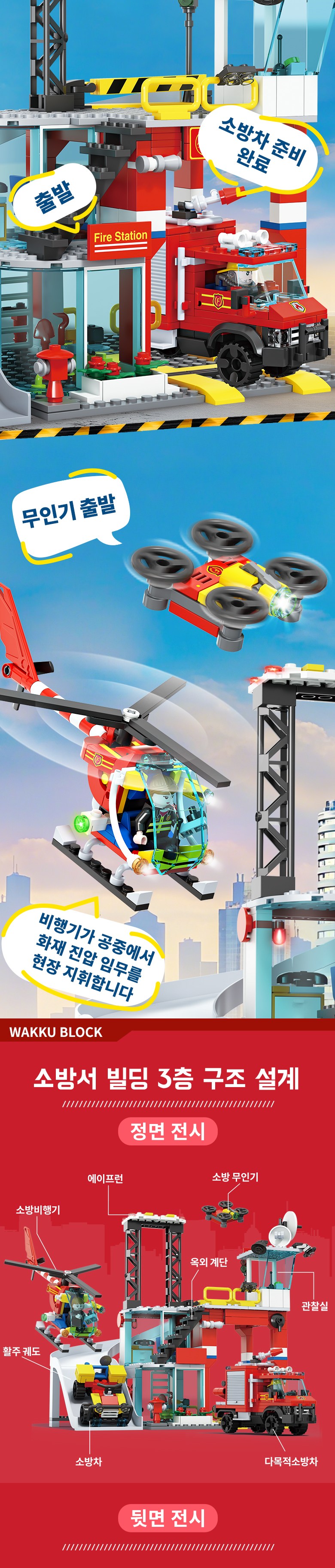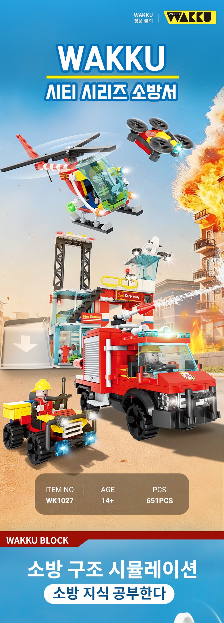 Wakku 시티 소방서 레고호환블록 소방차 비행기 피규어 4in1 블럭세트 pcs651