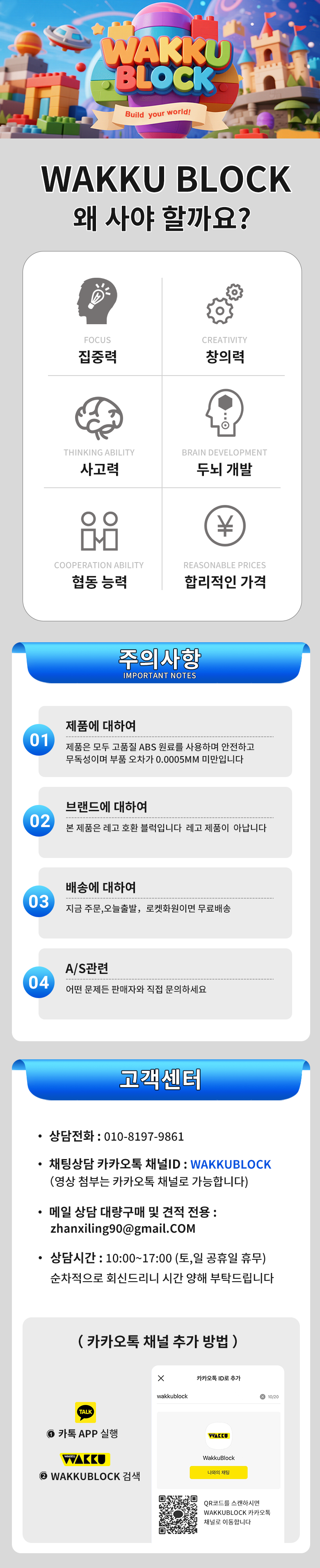 | 소비자상담 관련 전화번호 | 고객센터:010-8197-9861카카오톡 1:1채팅 아이디: wakkuBlock 이메일:zhanxiling90@gmail.com(주문번호 기재) | ||
