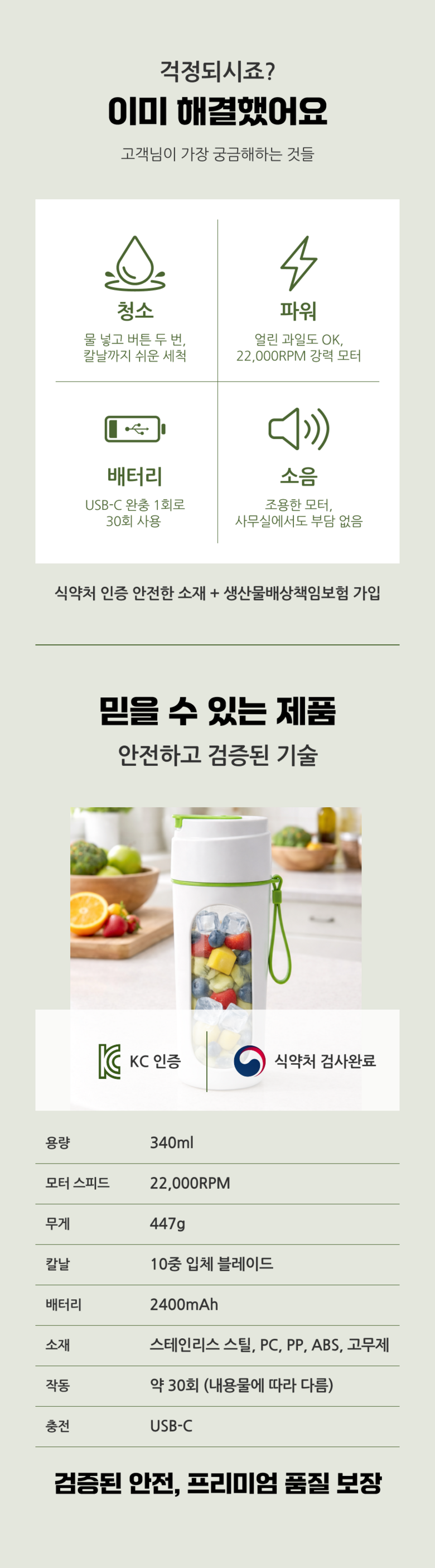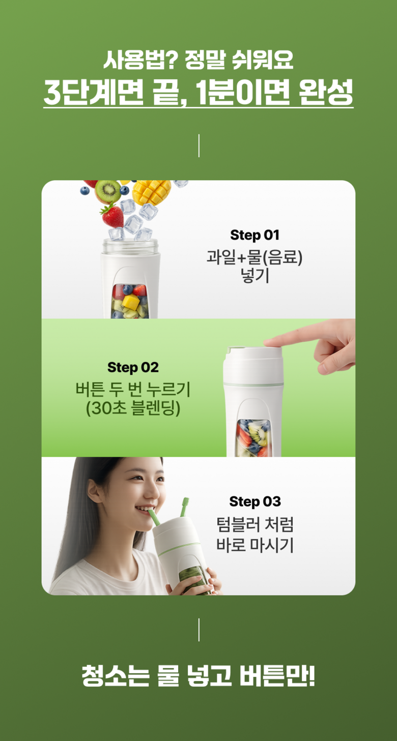 | 구성품 | 본품, 설명서, 빨대, C타입 USB 케이블 | 크기 | 340mL(90.8x85x212mm) |