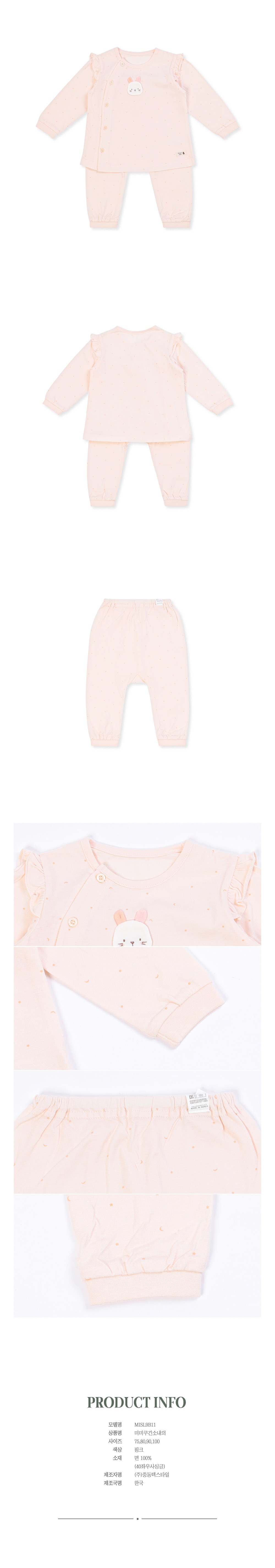 | 품명 및 모델명 | 오가닉맘 미미쿠긴소내의 080호 MISL9B11 상의+하의세트 | KC 인증정보 | CB015A0157-1004 |