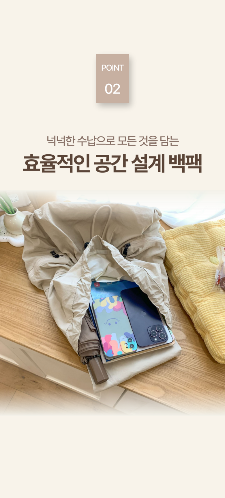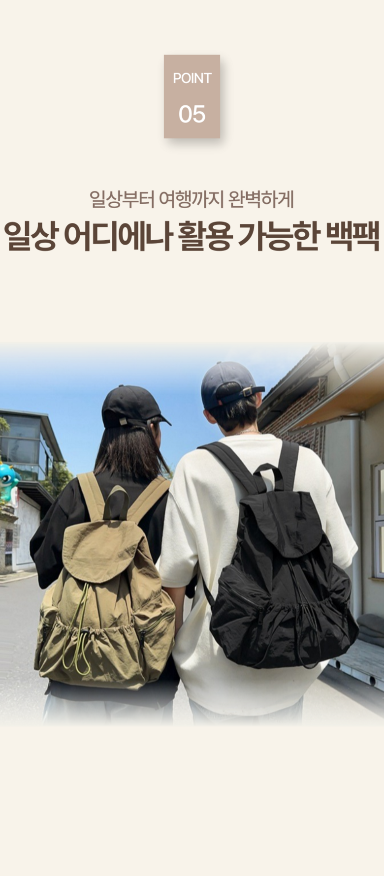 투니스 여성 셔링 가벼운 여행용 경량 스트링 나일론 백팩