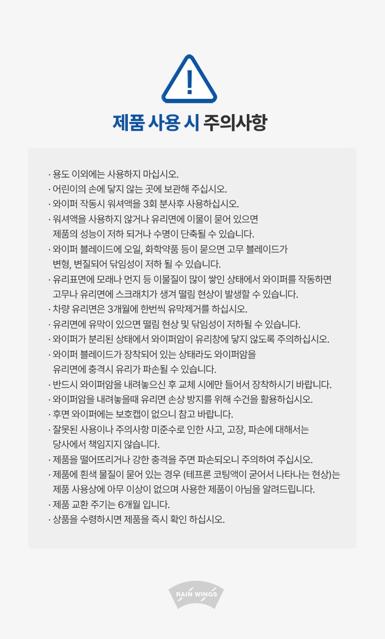| 품명 및 모델명 | 레인윙스 폭스바겐 전용 후면 후방 리어와이퍼 | 동일모델 출시년월 | 업체미제공 |