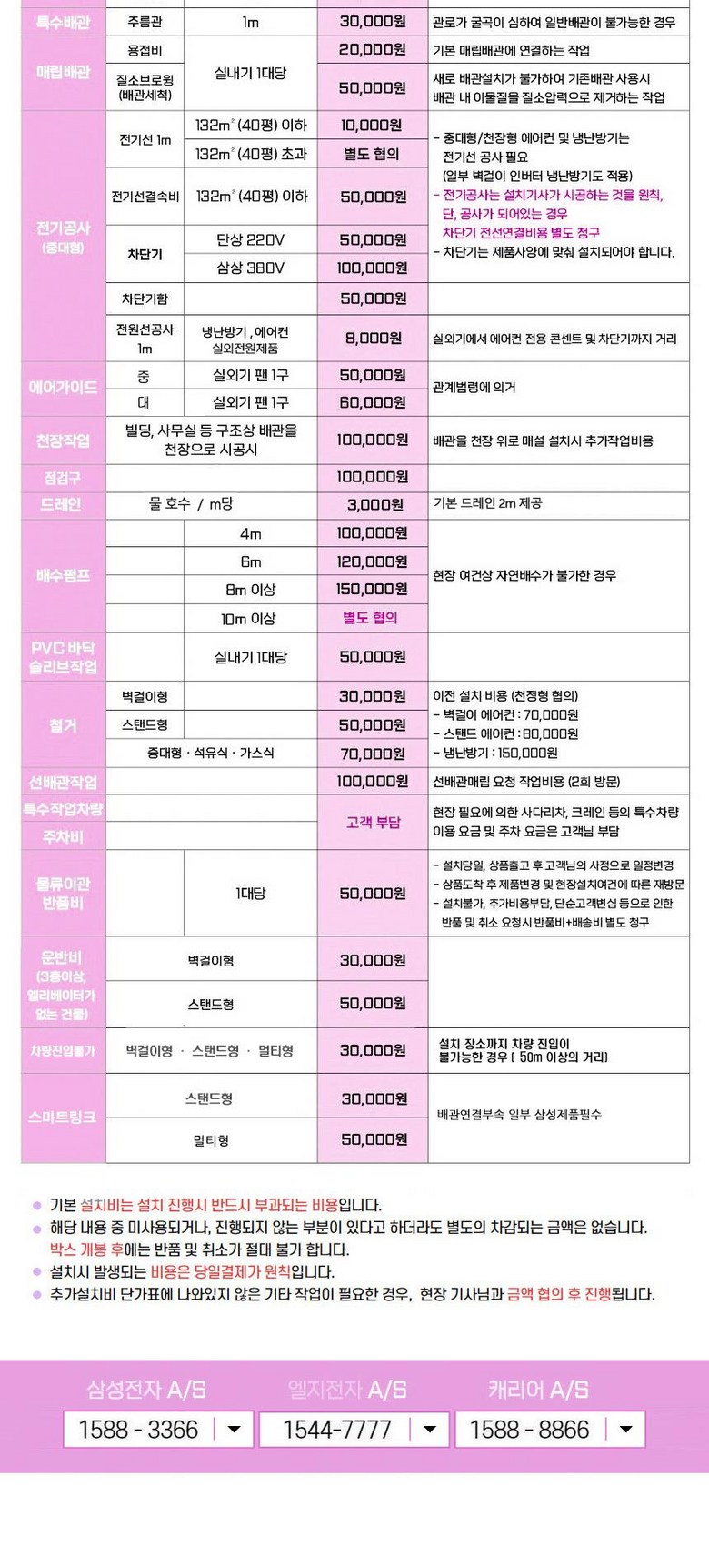 - ㆍ제조사의 사정 (신모델 출시 등) 및 부품 가격 변동 등에 의해 무료 교환/반품으로 요청하는 경우