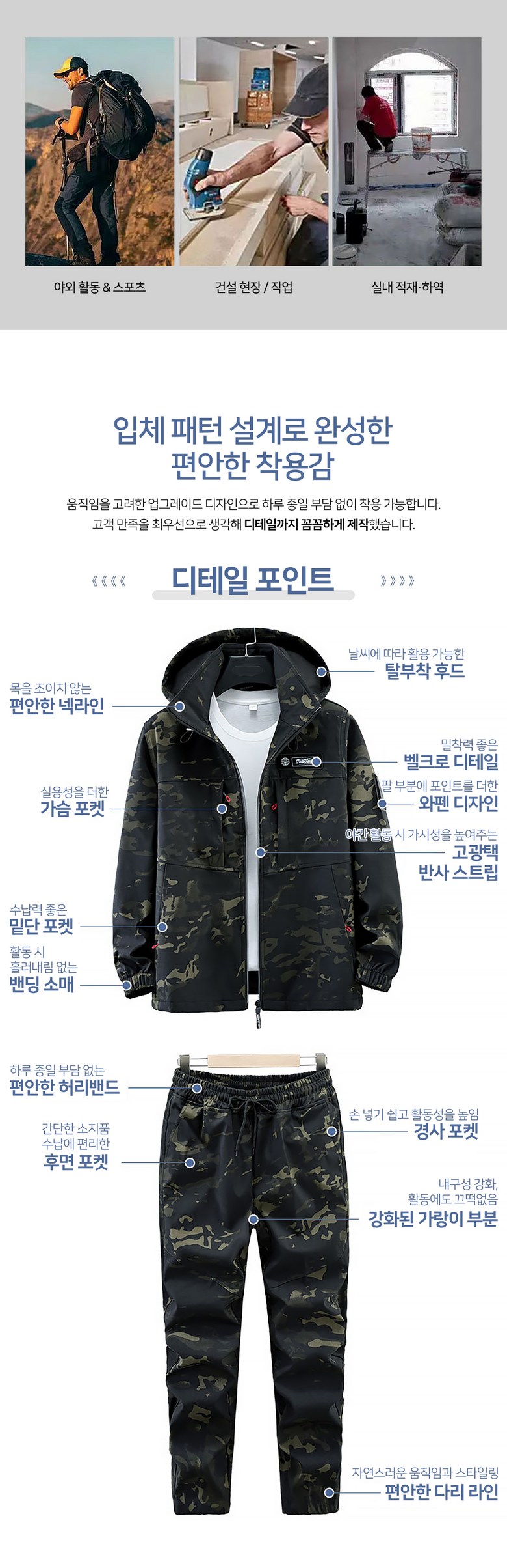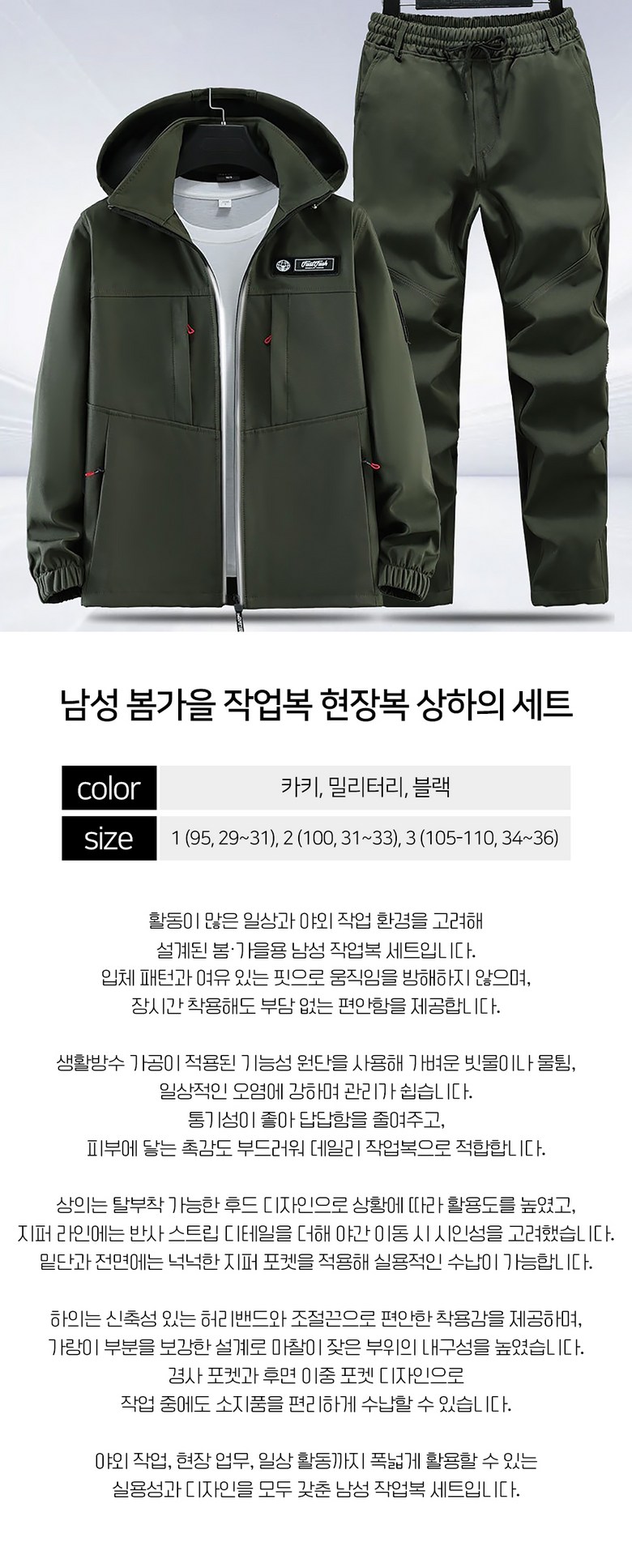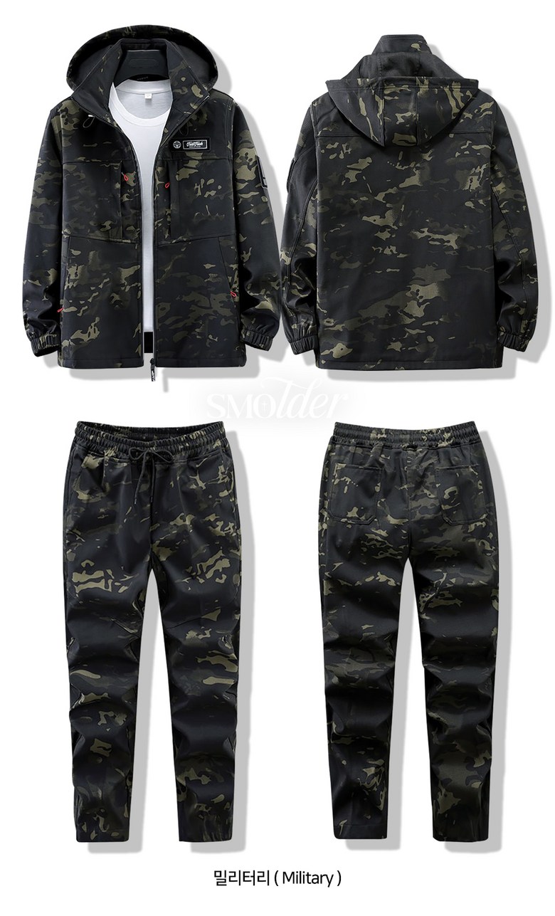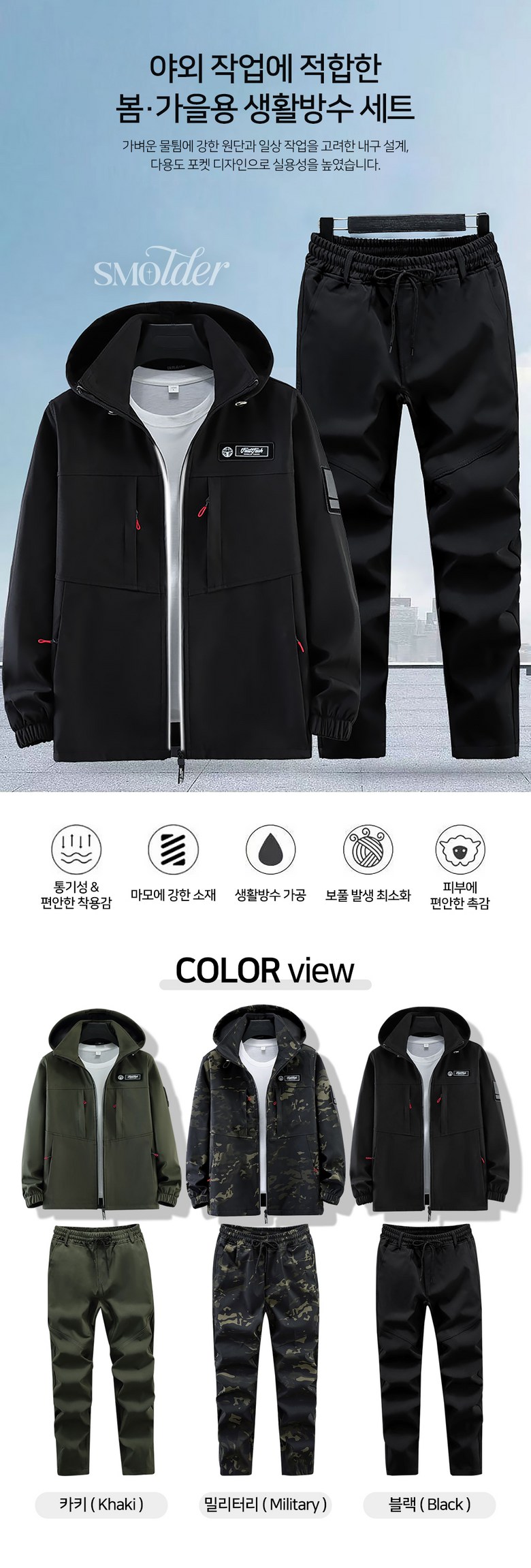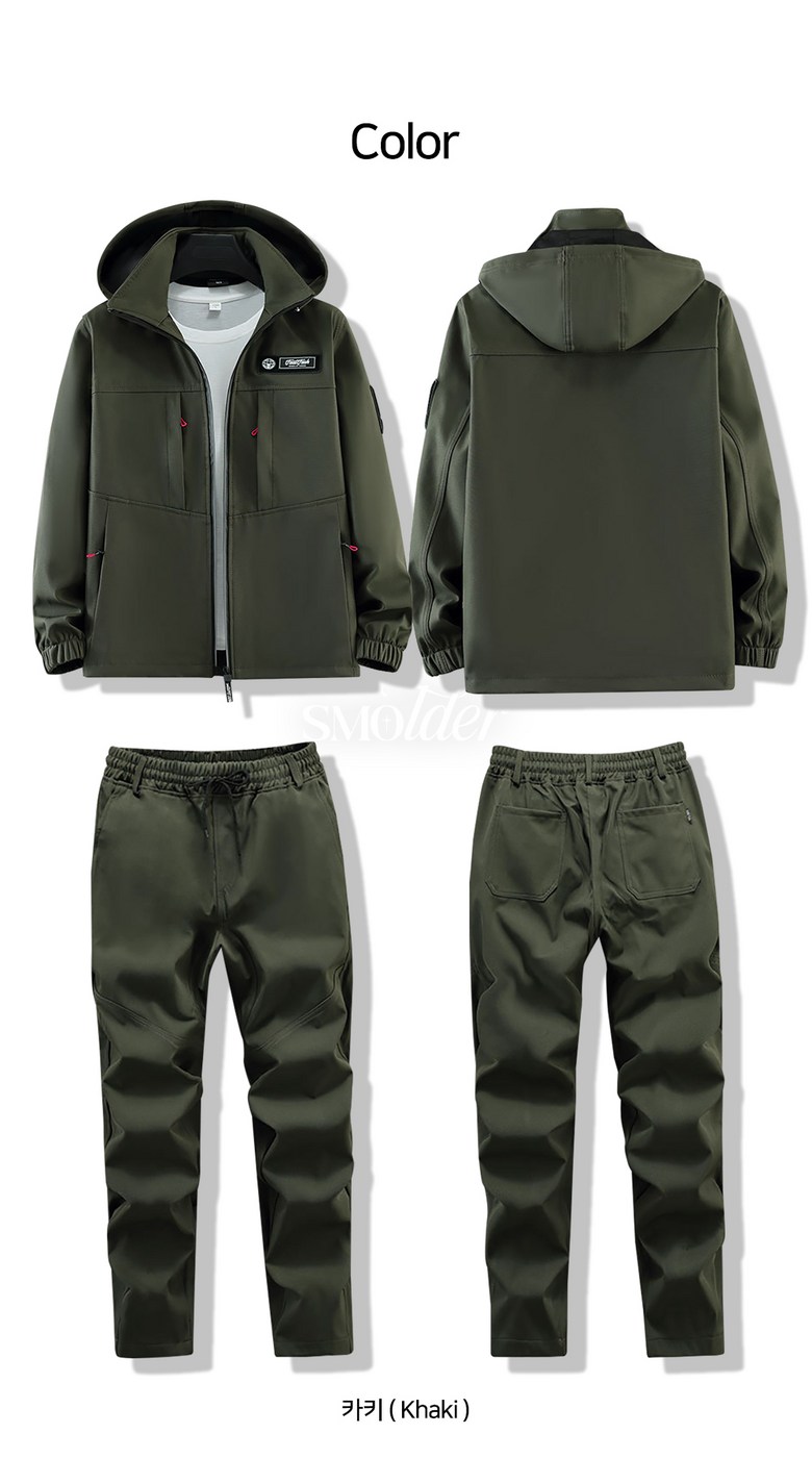 스몰더 남자 간절기 방풍 방수 작업복 아웃도어 라이더 집업 아우터 상하의 세트