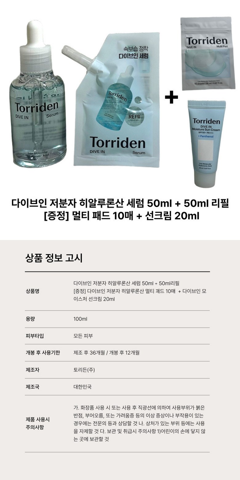 | 품명 및 모델명 | 다이브인 저분자 히알루론산 세럼 리필 한정 기획세트 | 인증/허가 사항 | 상품 상세페이지 참조 |