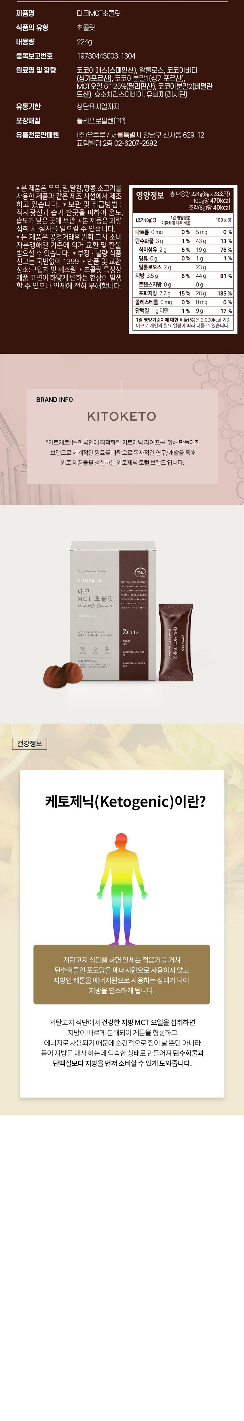 | 제품명 | 다크MCT초콜릿 | 식품의 유형 | 초콜릿 |