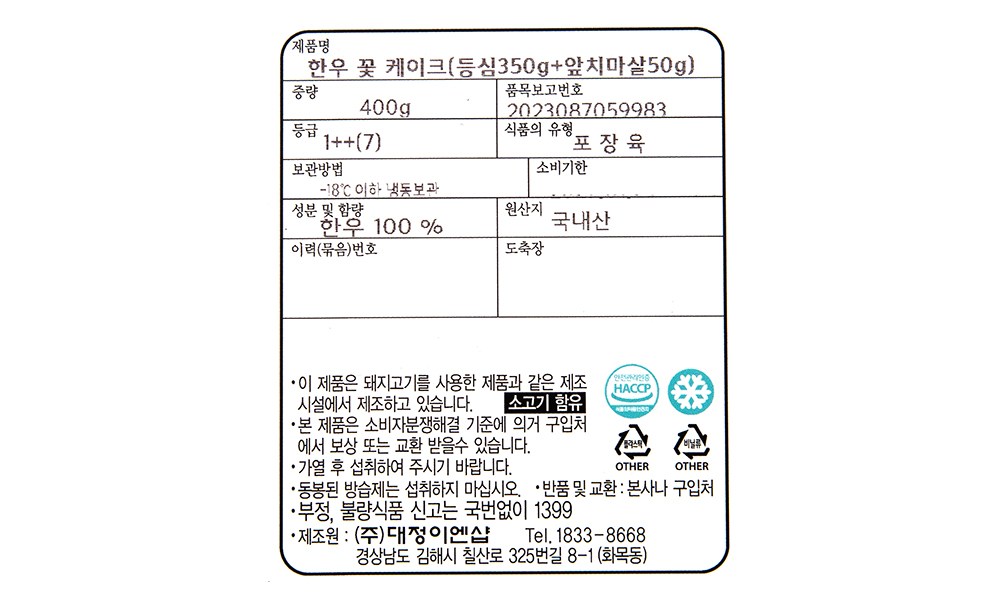 | 고기 특성상 운송 중 핏물이 발생할 수 있으나, 품질에는 이상이 없으니 안심하고 드세요. |