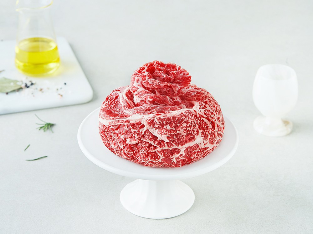 마블링이 풍부한 1++(7)등급 한우 꽃케이크