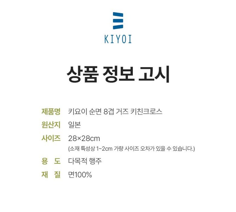 | 품명 및 모델명 | 하라다 키요이 8겹 순면 키친크로스 작은새 세트 | 재질 | 면 100% |
