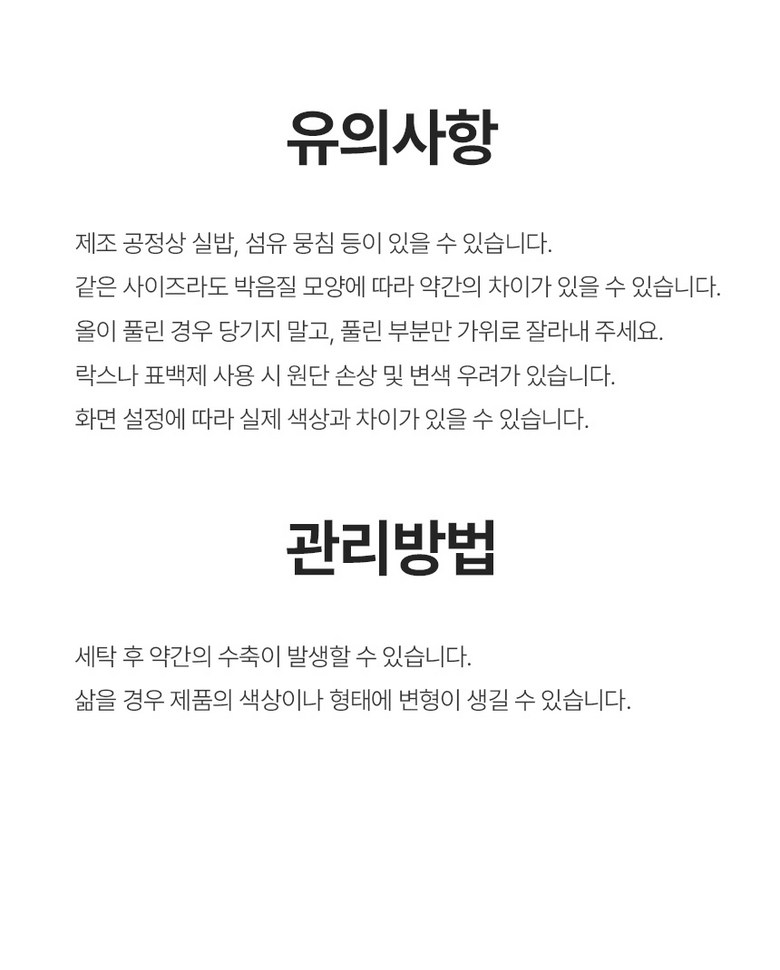 - ㆍ모니터 해상도의 차이로 인해 색상이나 이미지가 실제와 달라, 고객이 단순 변심으로 교환/반품을 무료로 요청하는 경우