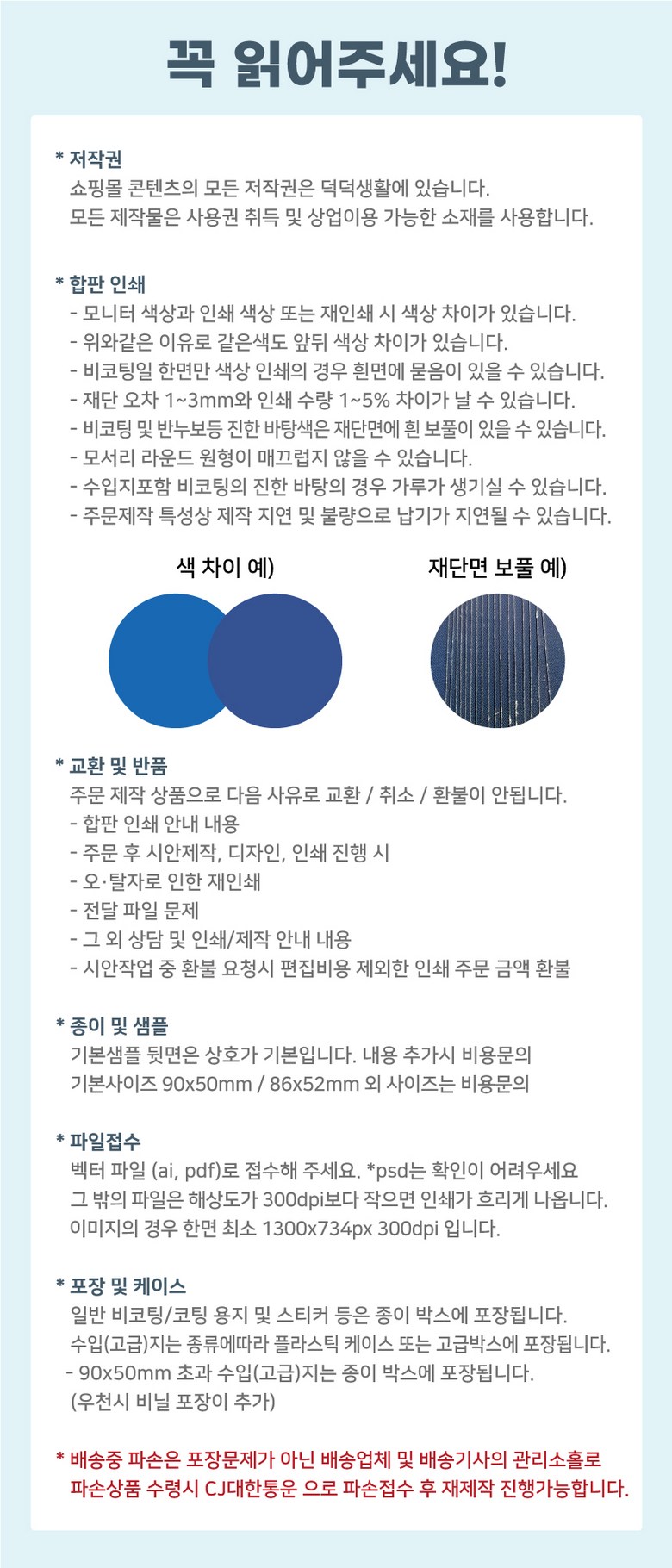 - ㆍ모니터 해상도의 차이로 인해 색상이나 이미지가 실제와 달라, 고객이 단순 변심으로 교환/반품을 무료로 요청하는 경우