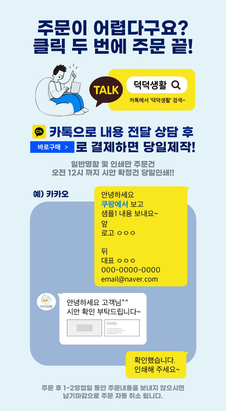 상호/대표자 | 덕덕생활 / 이찬희 | 사업장 소재지 | 경기도 고양시 덕양구 동축로 70 (동산동) 5층 A-A-05-27호 |