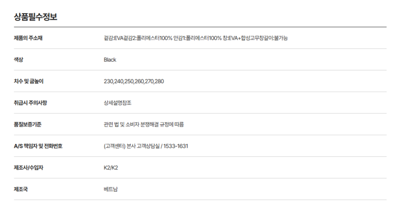 | 교환/반품 비용 (왕복비용) | 8,000원 - 단, 고객 변심의 경우에만 발생 - 도서산간 및 일부 지역 추가비용 발생 |