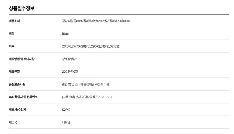 | 제조국 | 상품 상세페이지 참조 | 세탁방법 및 취급시 주의사항 | 상품 상세페이지 참조 |