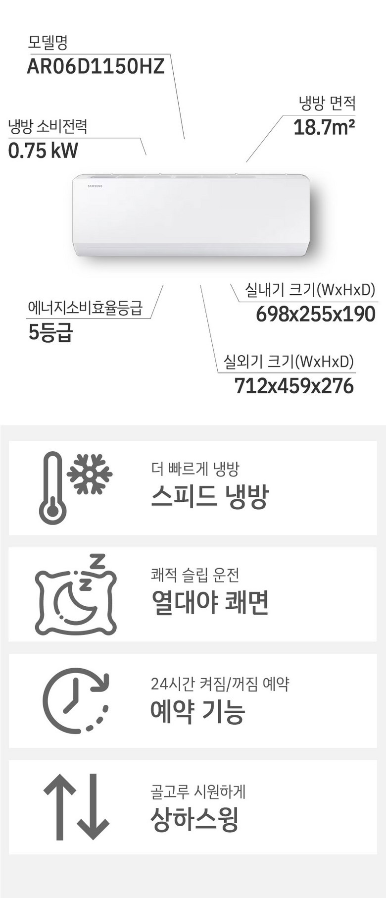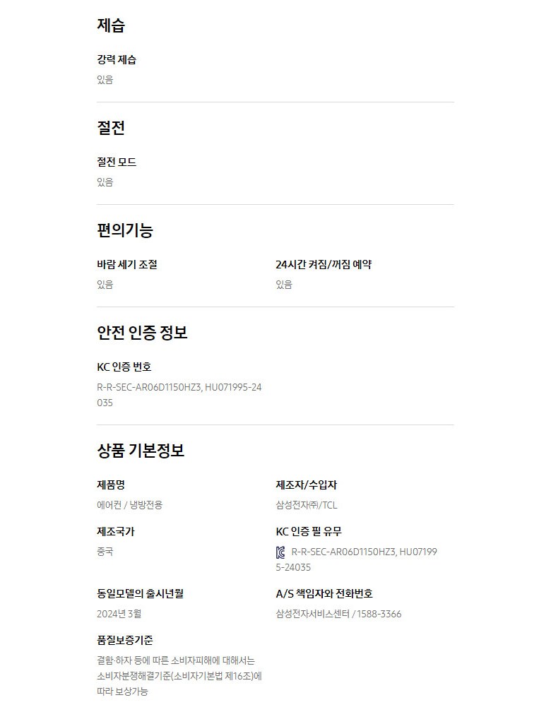 | 품명 및 모델명 | AR06D1150HZ | KC 인증정보 | 전기용품 및 생활용품 안전관리법에 따른 KC인증 대상 |