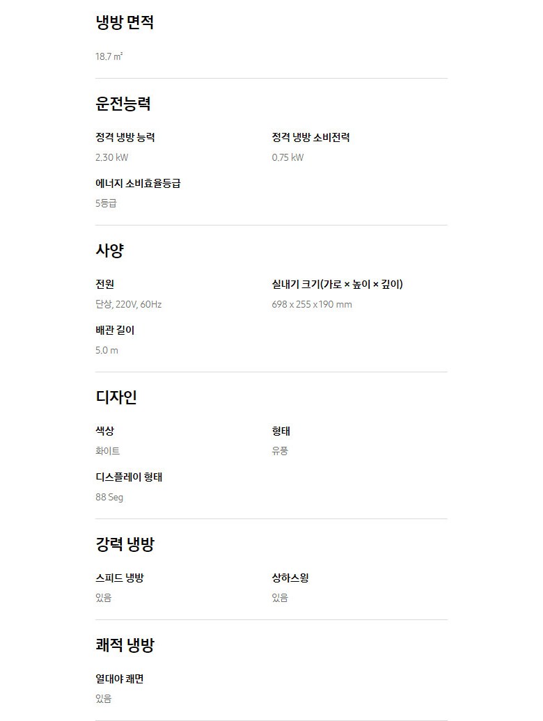 | 정격전압, 소비전력 | 220V×60㎐ | 0.75㎾ | 에너지소비효율등급 | 5등급 |
