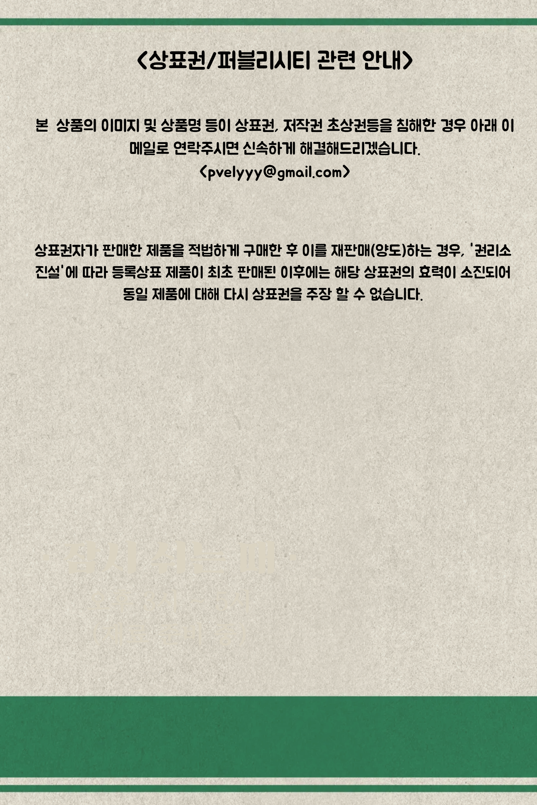- ㆍ모니터 해상도의 차이로 인해 색상이나 이미지가 실제와 달라, 고객이 단순 변심으로 교환/반품을 무료로 요청하는 경우