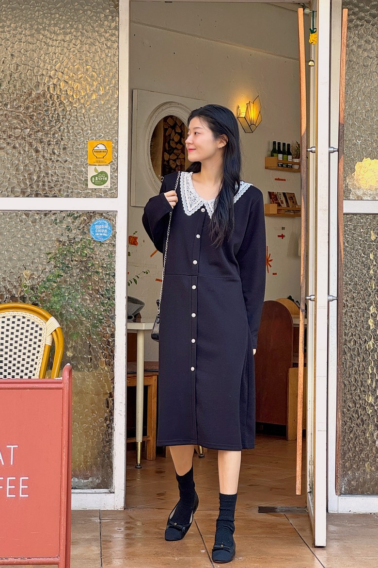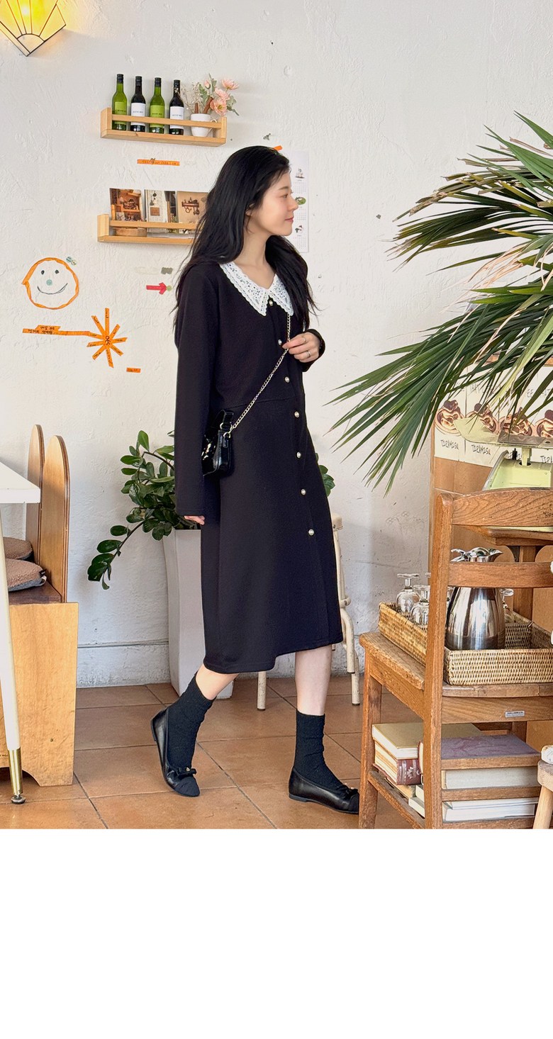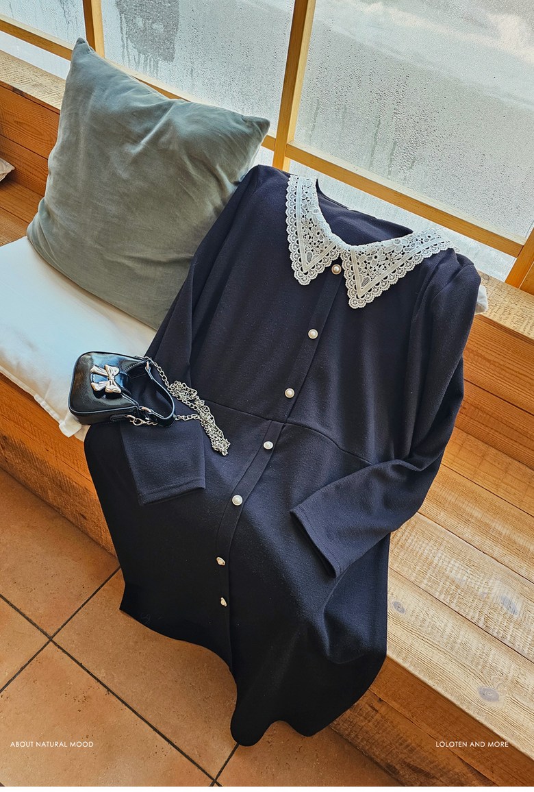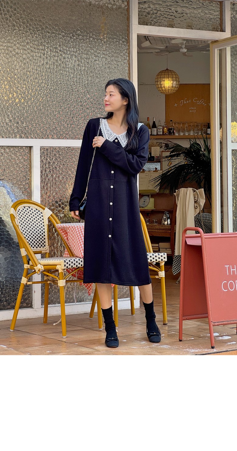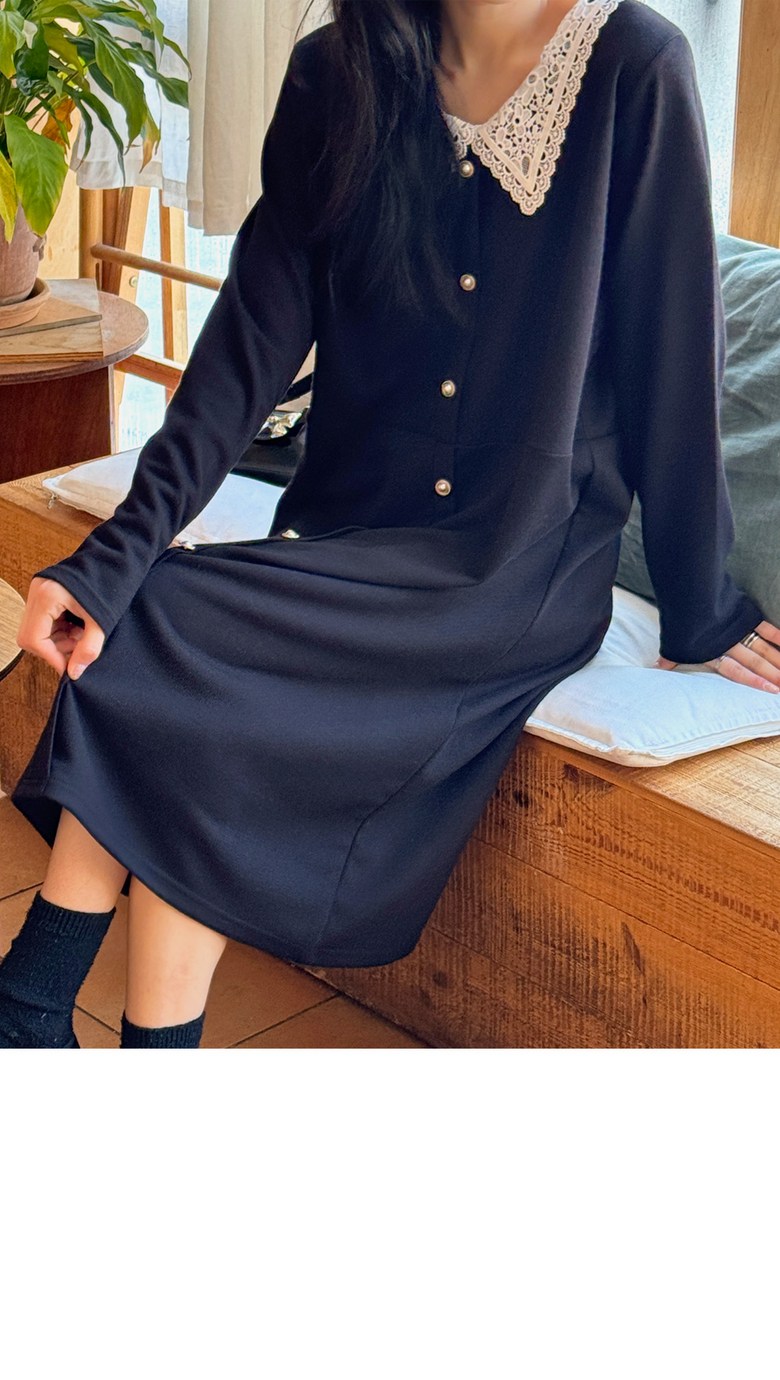 1COLOR 기닝 레이스 카라 롱원피스