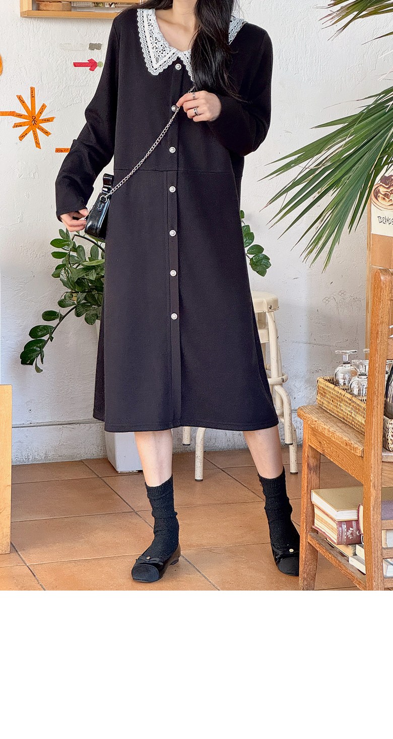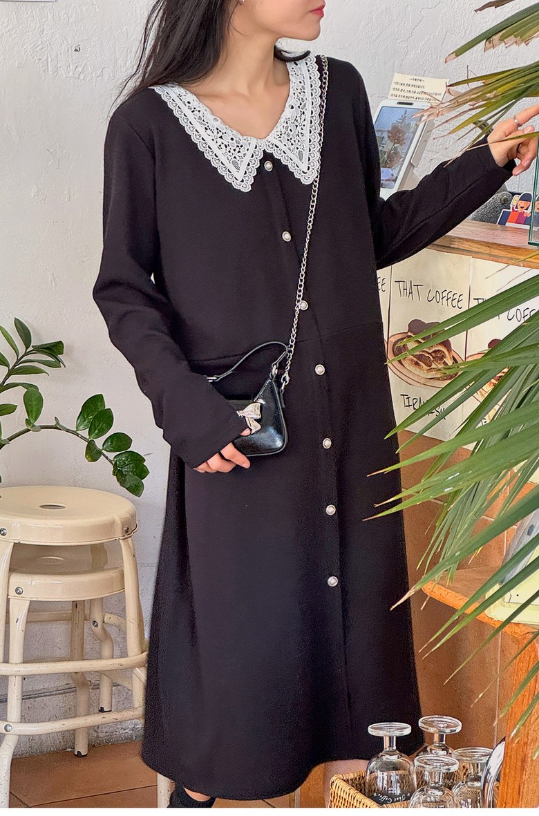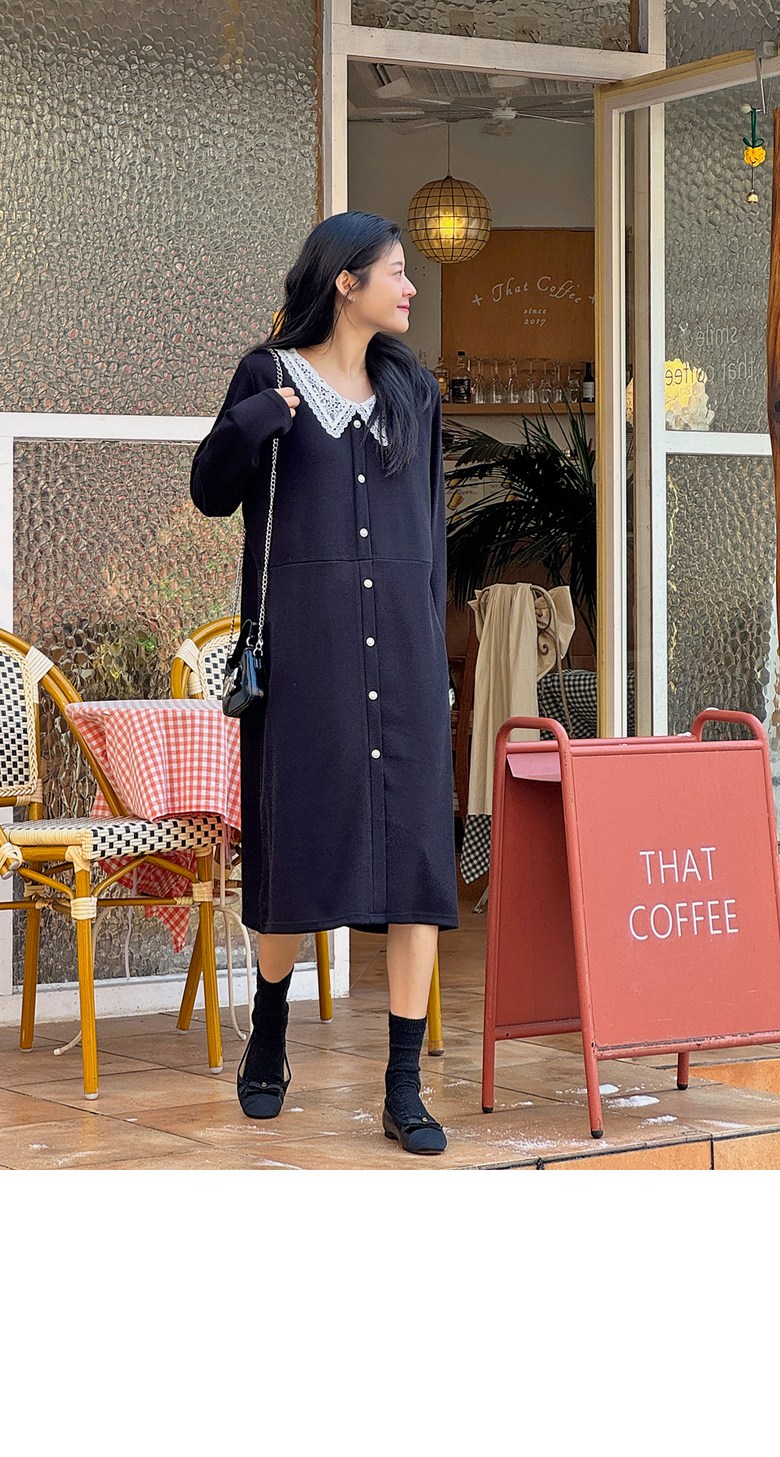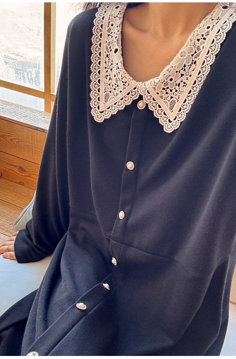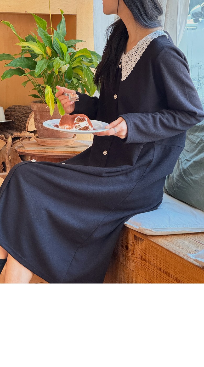 1COLOR 기닝 레이스 카라 롱원피스