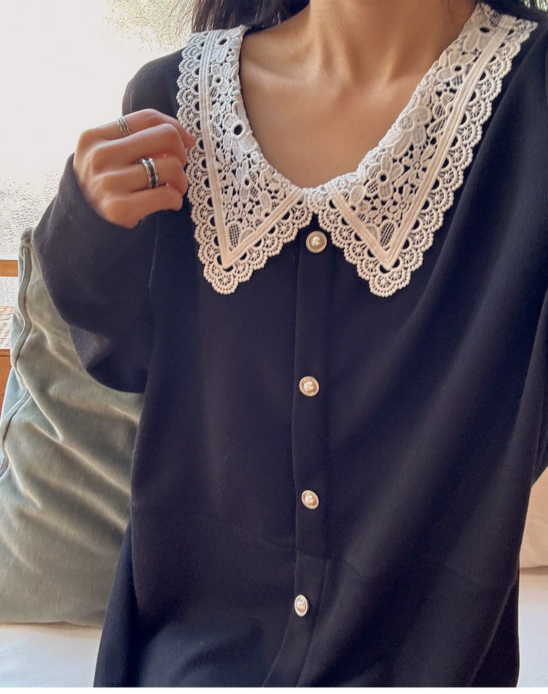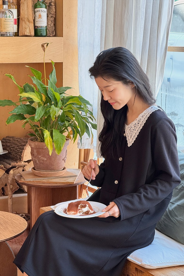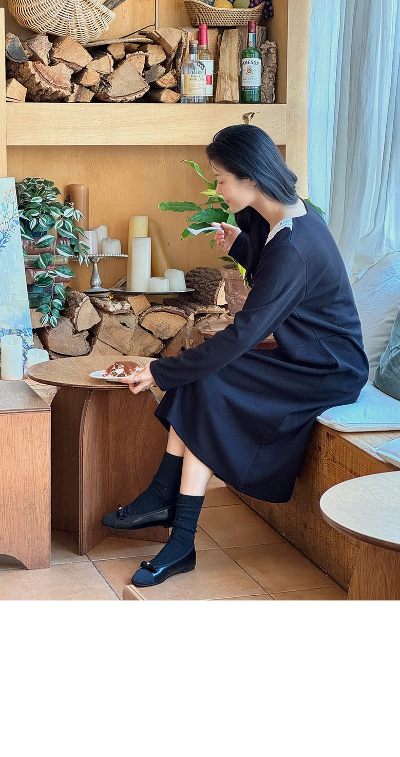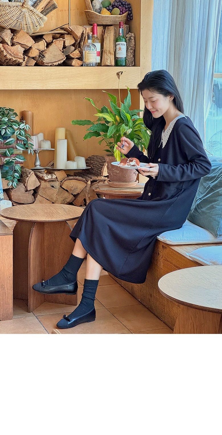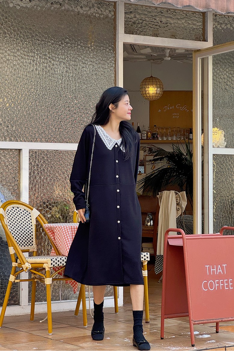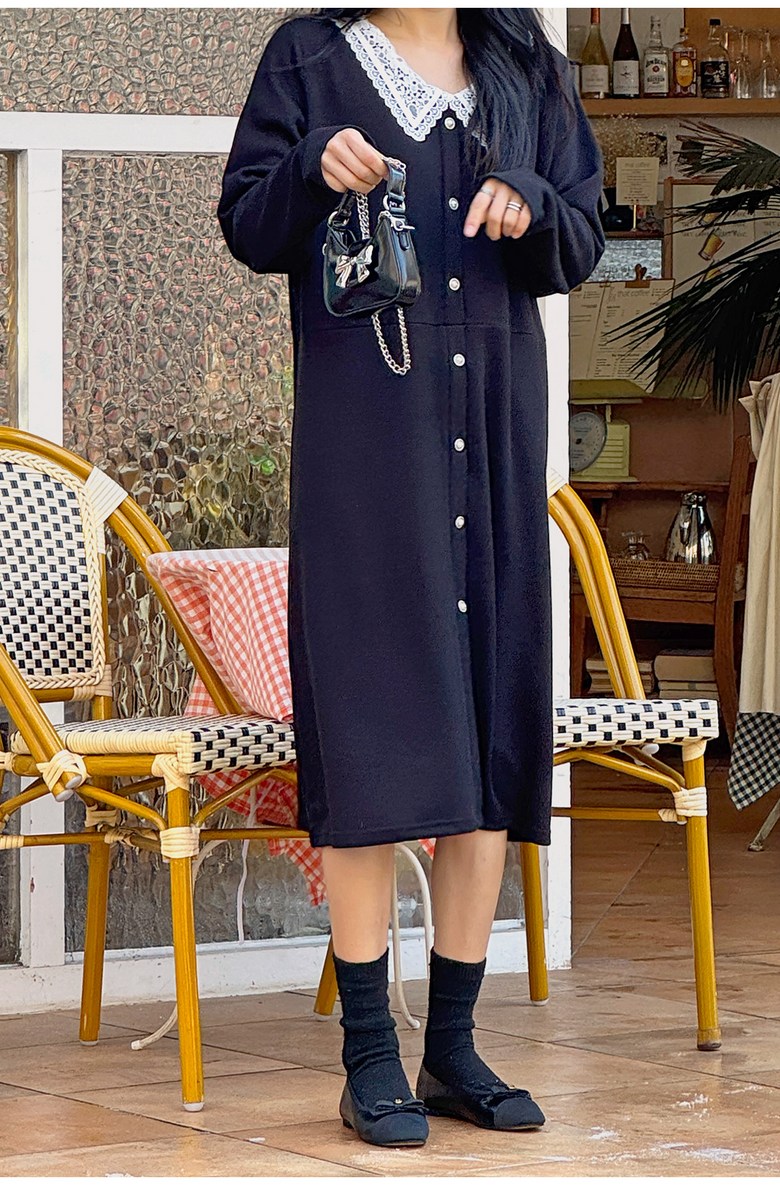 1COLOR 기닝 레이스 카라 롱원피스