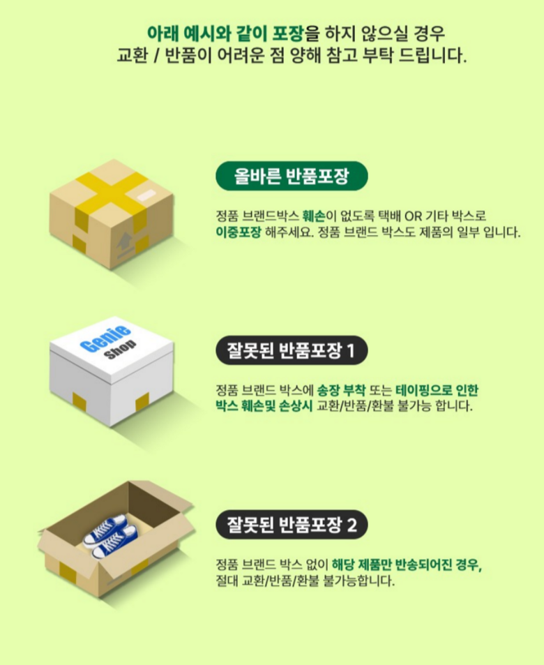 - ㆍ모니터 해상도의 차이로 인해 색상이나 이미지가 실제와 달라, 고객이 단순 변심으로 교환/반품을 무료로 요청하는 경우