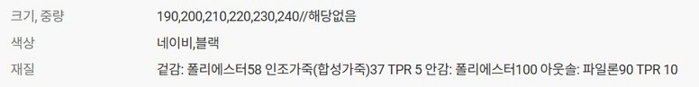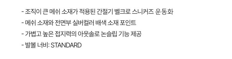 | 제품의 주소재(운동화인 경우에는 겉감,안감을 구분하여 표시) | 상품 상세페이지 참조 | 색상 | 상품 상세페이지 참조 |