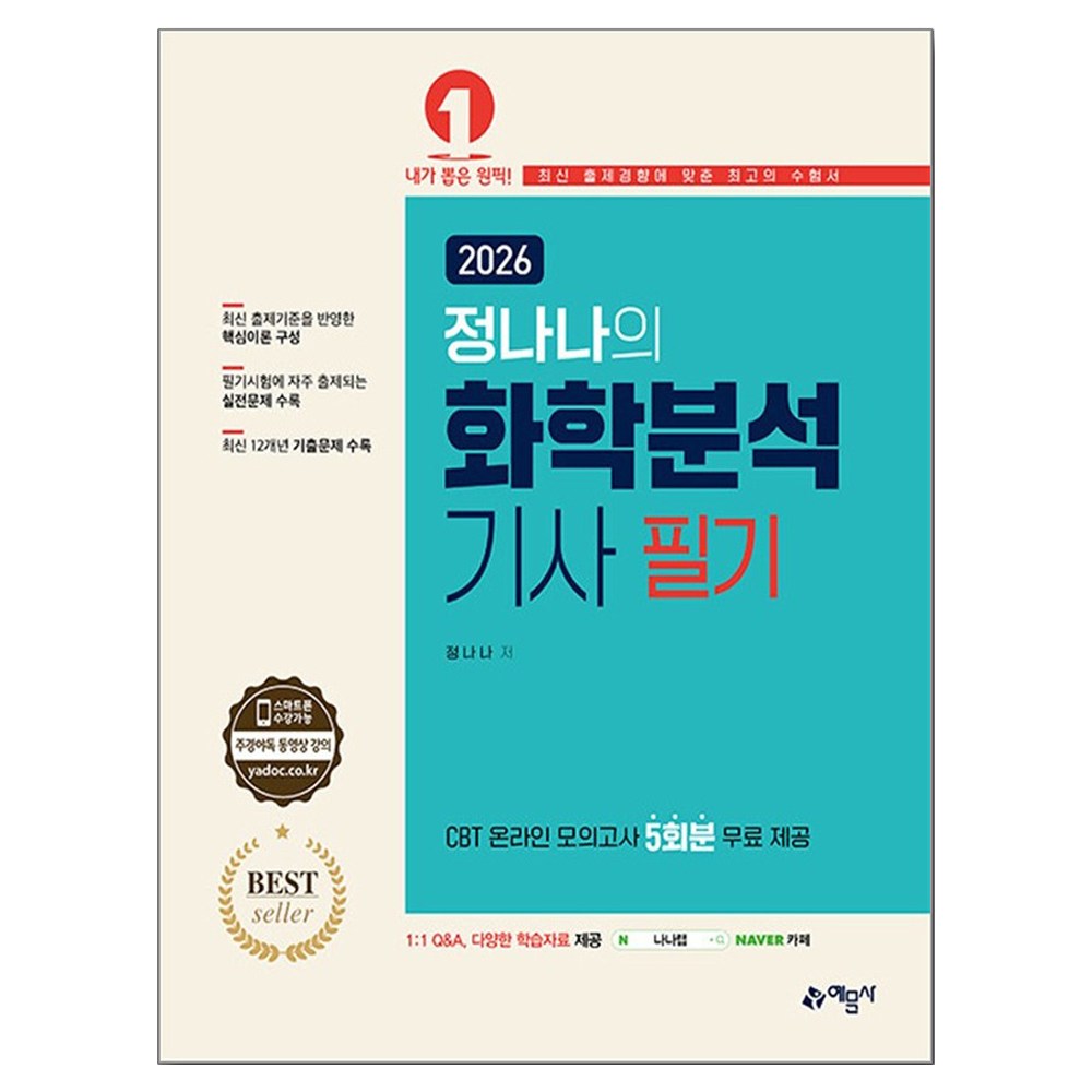 | 도서명 | 2026 정나나의 화학분석기사 필기 | 저자, 출판사 | 정나나,예문사 |