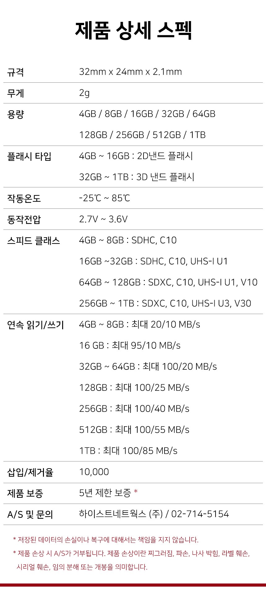 | 제조자(수입자) | 트랜센드(트랜센드코리아) | 제조국 | 대만 |