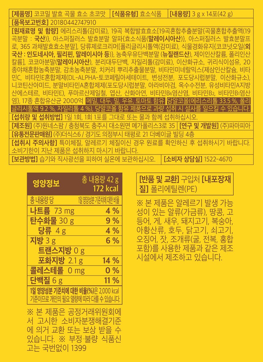| 포장단위별 내용물의 용량(중량), 수량 | 컨텐츠 참조 | 원재료명 및 함량 | 컨텐츠 참조 |